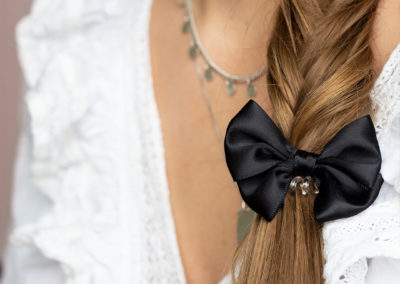 Il fiocco è tornato! Giocando sull’immagine della “brava ragazza”, Invisibobble BOWTIQUE trasforma le classiche pony tail, le trecce e i bun, in look alla moda. Un tocco in più per creare acconciature originali ed elevare anche le più semplici. BOWTIQUE di Invisibobble è l’alternativa chic per raccogliere trecce e code: un fiocco in raso nero, su un elastico traceless. Grazie alla resina artificiale da cui è composto, non tira o strappa i capelli nel momento di scioglierli. Inoltre, grazie al doppio fiocco, non è solo bellissimo fra i capelli ma anche al polso.