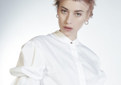 Il Dadaismo è il periodo di riferimento, nato con l’intento di creare nuove forme di espressione dall’arte alla fotografia. Ecco, quindi, come attraverso uno “specchio rotto” in più parti vediamo riflettersi il volto di una donna energica. Un multiplo che azzera le distanze e che porta la collezione direttamente agli anni ’50 e ’60 quando il concetto di “unisex” vede la sua prima nascita fino a confluire in collezioni azzeranti il confine tra maschile e femminile oggi riconosciute come “genderless”.