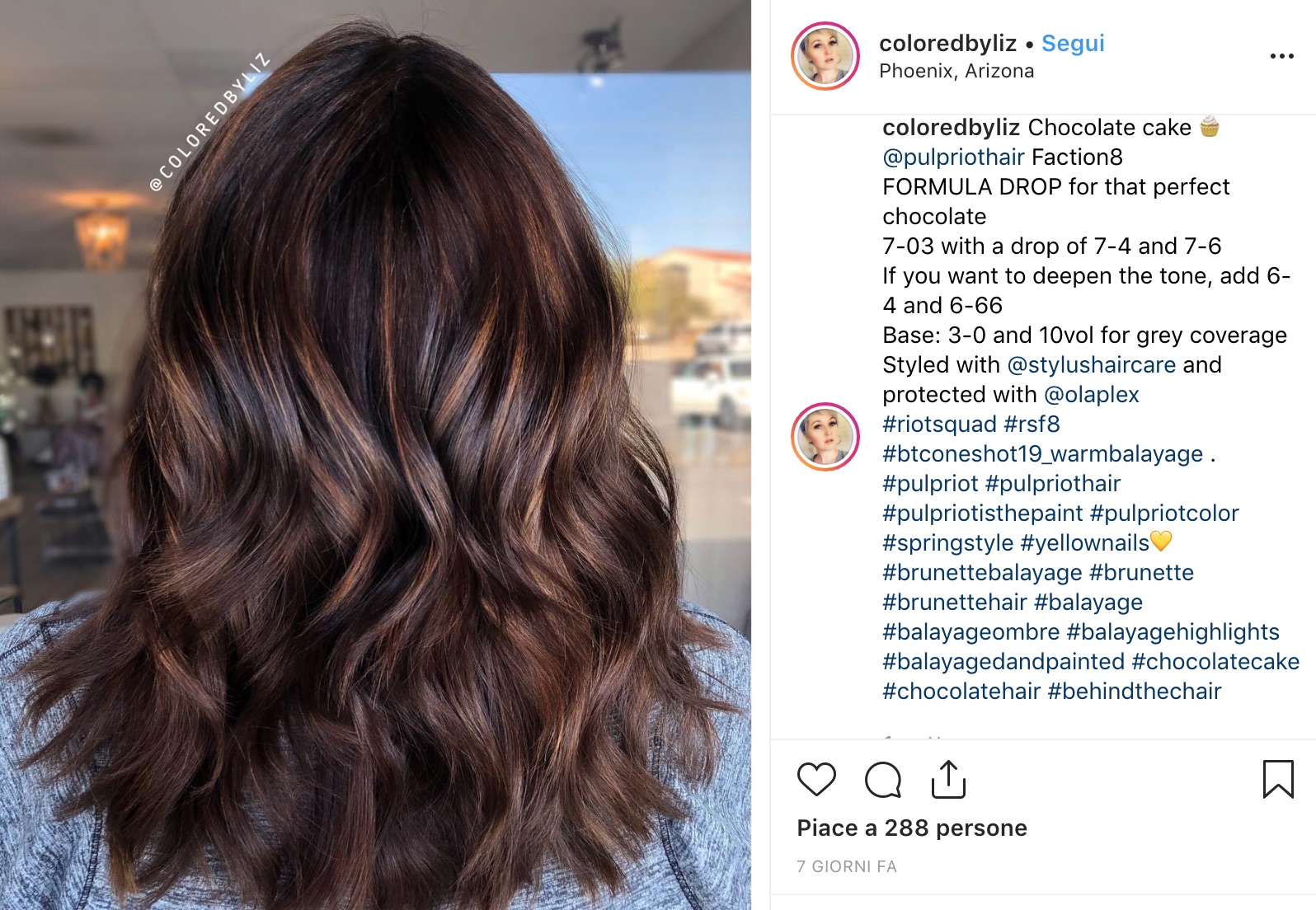 A lanciare il nuovo colore è stata la colorista dell’ Arizona Liz Cook, che ha spiegato al magazine Allure l’importanza dei riflessi, per differenziare questo colore dagli altri castani, e come questi riflessi le ricordassero la glassa appiccicosa tra gli strati di cioccolato fondente delle torte al cioccolato… vi è venuta fame o voglia di cambiare colore??