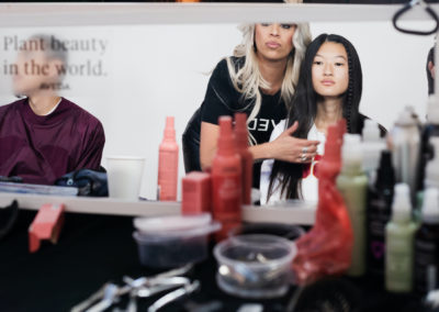 Per ottenere i look sono stati usati: Nutriplenish Leave-In Conditioner per capelli morbidi, lucenti e facili da districare; Phomollient Styling Foam, una schiuma a tenuta medio leggera; Brilliant Universal Styling Crème per creare delle onde con i “baby hair” delle modelle e Control Force Firm Hold Hair Spray per dare un extra boost di solidità alle acconciature.