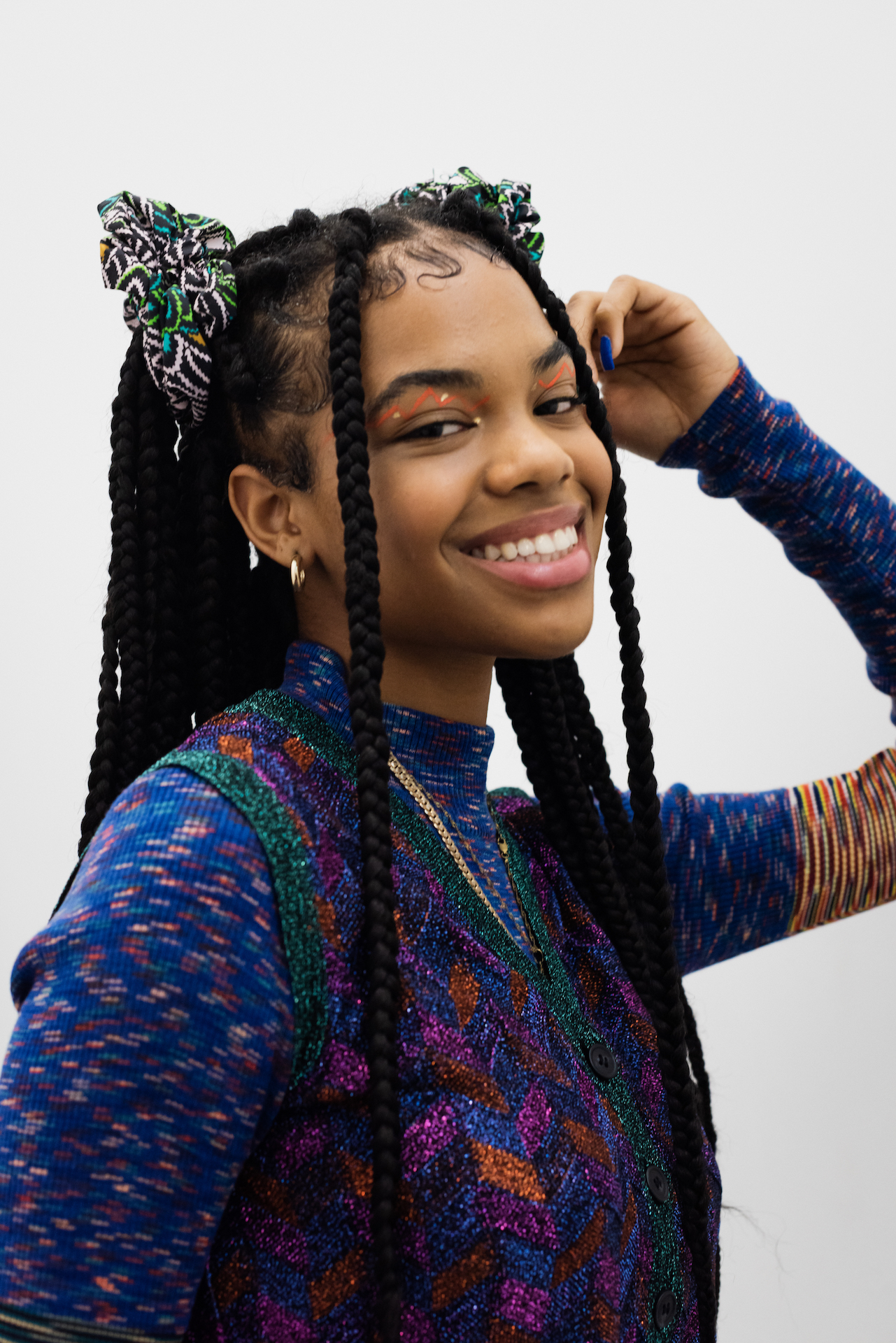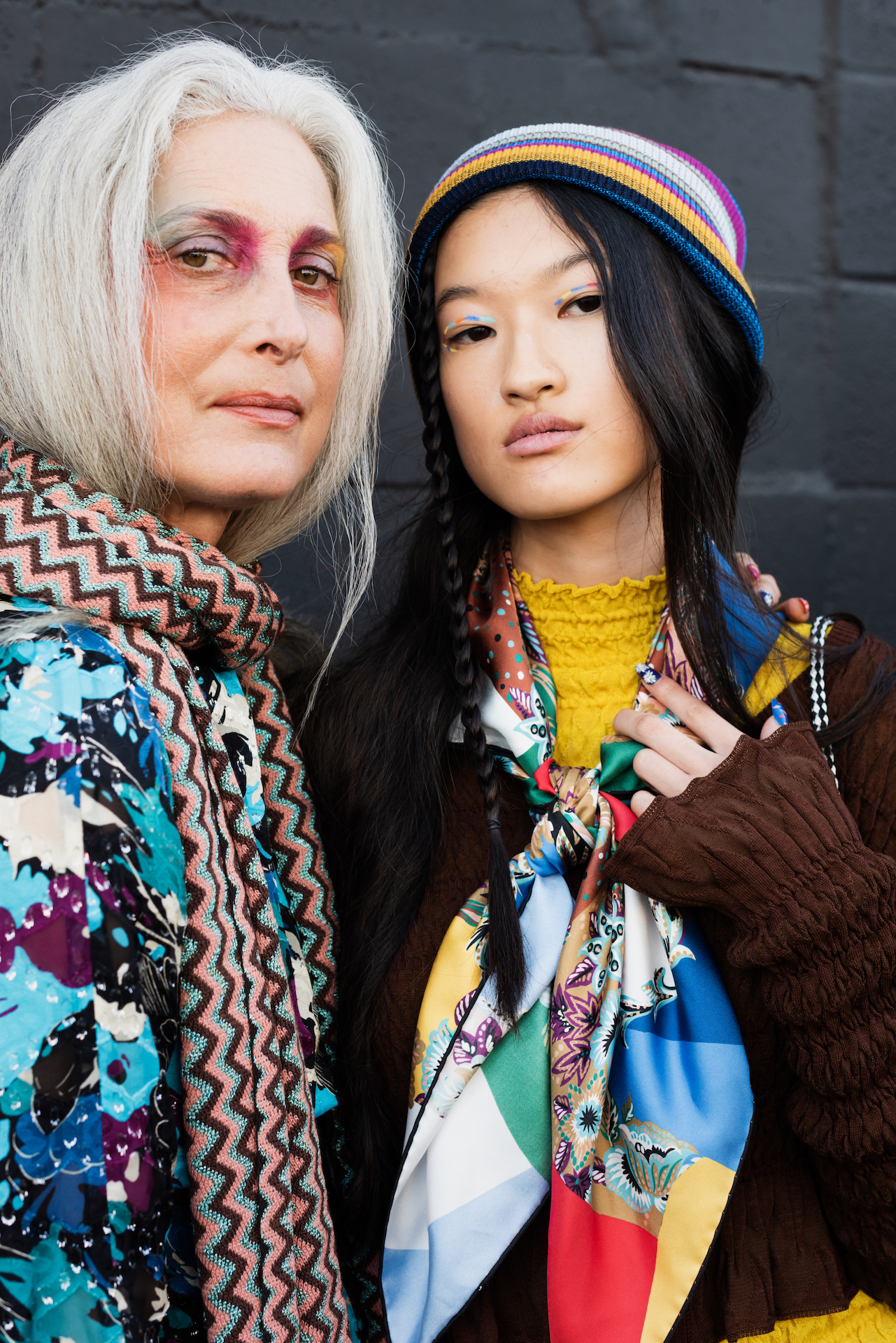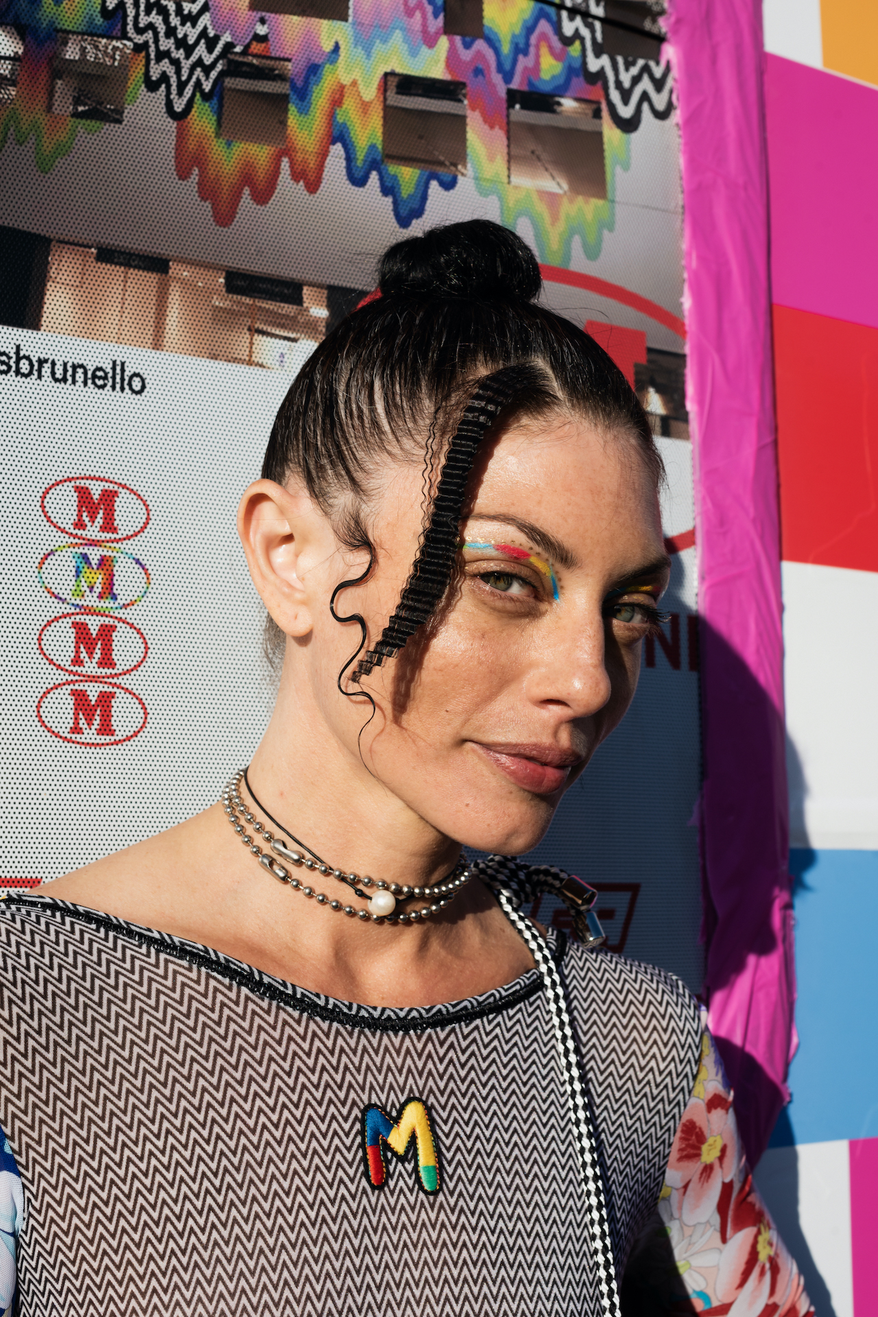 L’artista ospite di Aveda, Tomo Jidai, è stato l’hairstylist principale dell’evento e si è ispirato ai look capelli degli anni ’80, e la designer Zandra Rhodes ha creato look tutti diversi per ogni modella. “Non volevamo cambiare la texture naturale dei capelli, ma piuttosto definirli e aggiungere un po’ di consistenza, accentuandoli con la firma tipica di Missoni”, ha affermato Tomo Jidai. Il colore dei capelli delle modelle era caratterizzato da sfumature di rosa, arancione e blu-verde e, ispirato alla firma a zigzag di Missoni, e il look risultava alla fine arricciato o intrecciato.