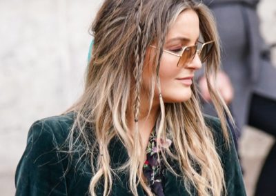 Queste micro treccine possono essere realizzate anche senza elastico finale a bloccarle, per dar loro un mood ancora più “flower power”, e possono viaggiare singole o in coppia… Basta farle scendere ai lati del viso et voilà, il gioco è fatto!