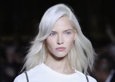 È molto chiaro, brillante, luminoso, effetto crema chantilly, con una leggera iridescenza che la rende naturalmente glowy e senza riflessi gialli proprio perché freddo: è il più glaciale tra i biondi, esalta la personalità e dona un’aura algida, anche se, ovviamente, richiede molta pazienza per realizzarlo e mantenerlo.
