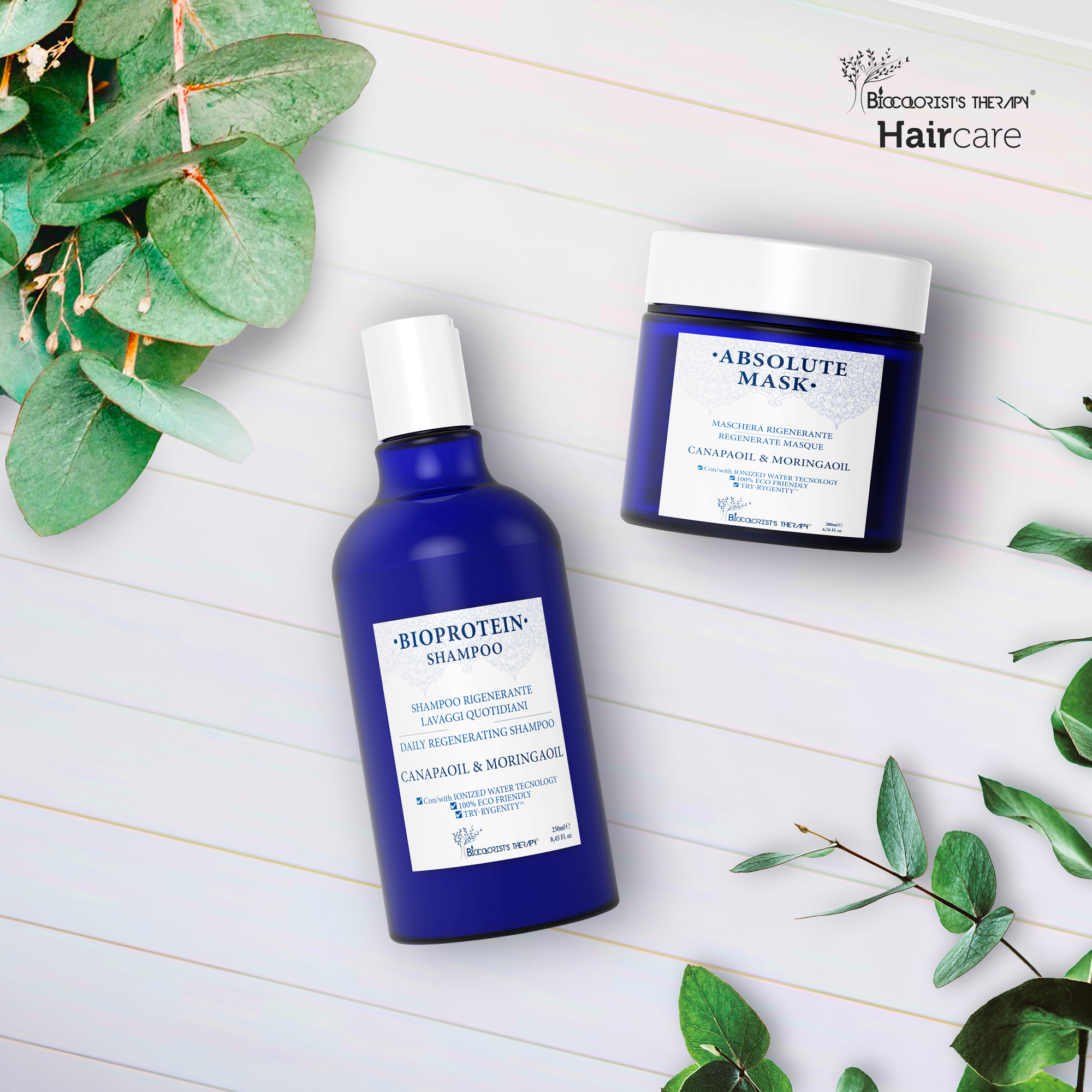 Nella preziosa boccetta blu cobalto sono racchiusi i migliori oli e amminoacidi naturali. Grazie alle loro proprietà rigenerano i capelli senza l’uso di sostanze chimiche.