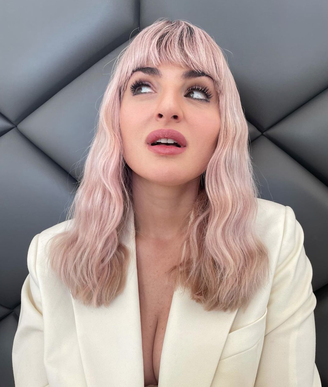 Arisa ha scelto una nuance fredda che addolcisce i suoi lineamenti, modernizzata dalla ricrescita castana in vista, sopracciglia bold, e da sfumature di diversa intensità, per un look molto pop che si chiude con una frangia sbarazzina e le lunghezze scolpite da onde di ispirazione vintage.