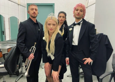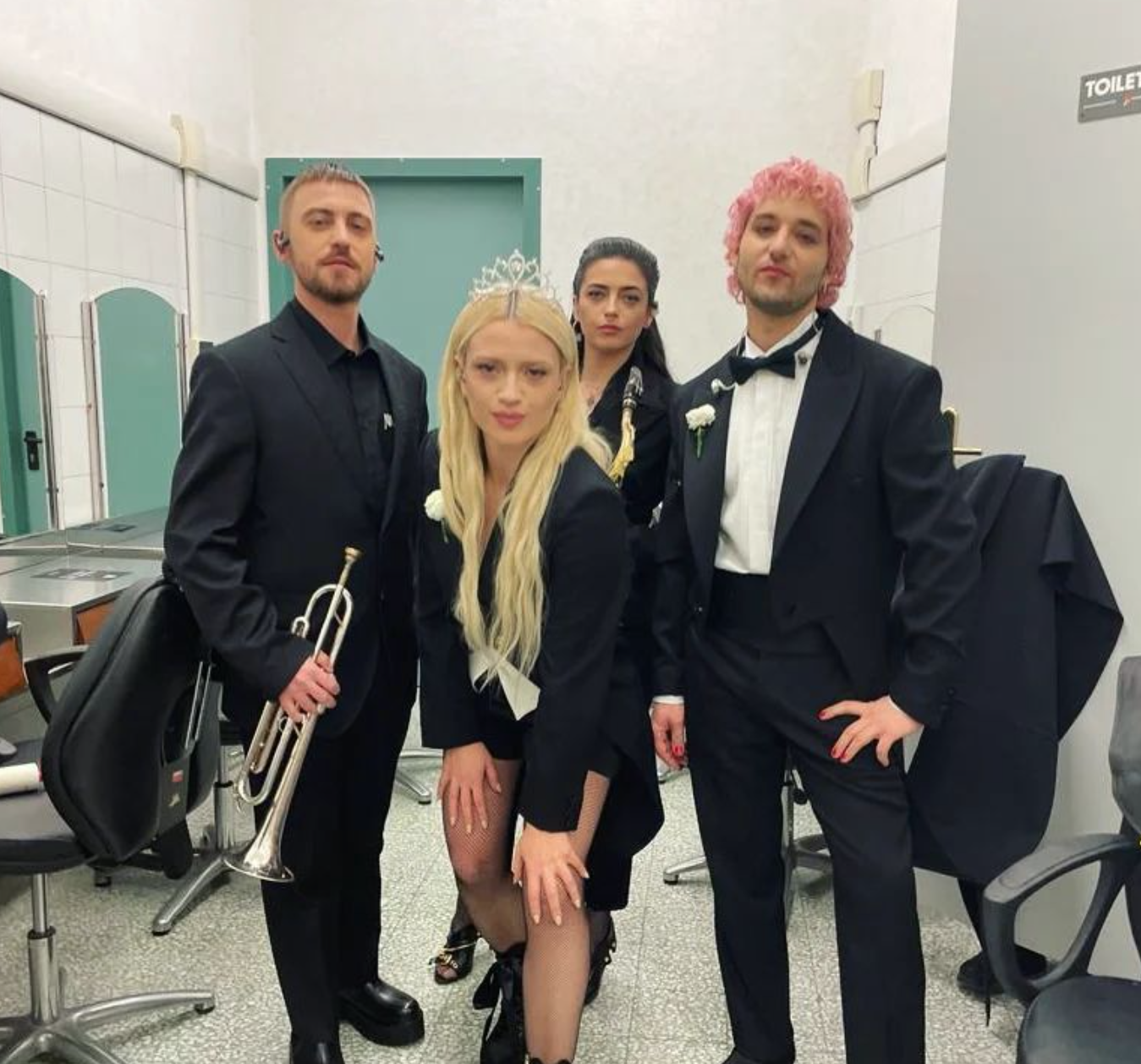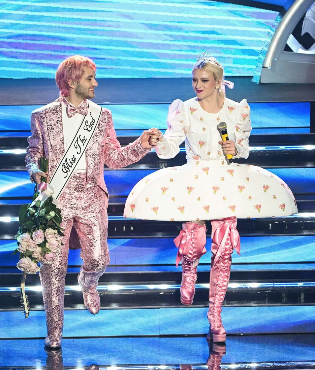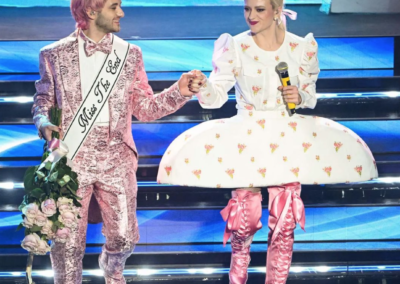 Infine, merita una nota anche la chioma curly di Dario Mangiaracina de La Rappresentante di lista che ha sfoggiato un barbie pink perfetto reso ancora più cool dal capello riccio.