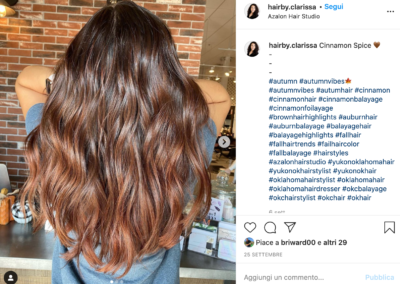Quest’inverno sarà scaldato dai colori della cannella con le sfumature del cinnamon balayage, già tra i colori più richiesti e un # super sdoganato e ricercato tra i social.