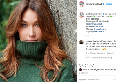 Testimonial d’eccezione di questo colore è l’ex First lady francese, Carla Bruni, che l’ha recentemente scelto per illuminare il suo iconico castano, grazie anche all’effetto ombre che lascia le radici scastano scuro e le lunghezze scaldate dal colore del foliage fino alle punte più chiare in golden brown. Il risultato è un colore vibrante che regala ai capelli i toni caldi dell’estate anche in questa stagione.