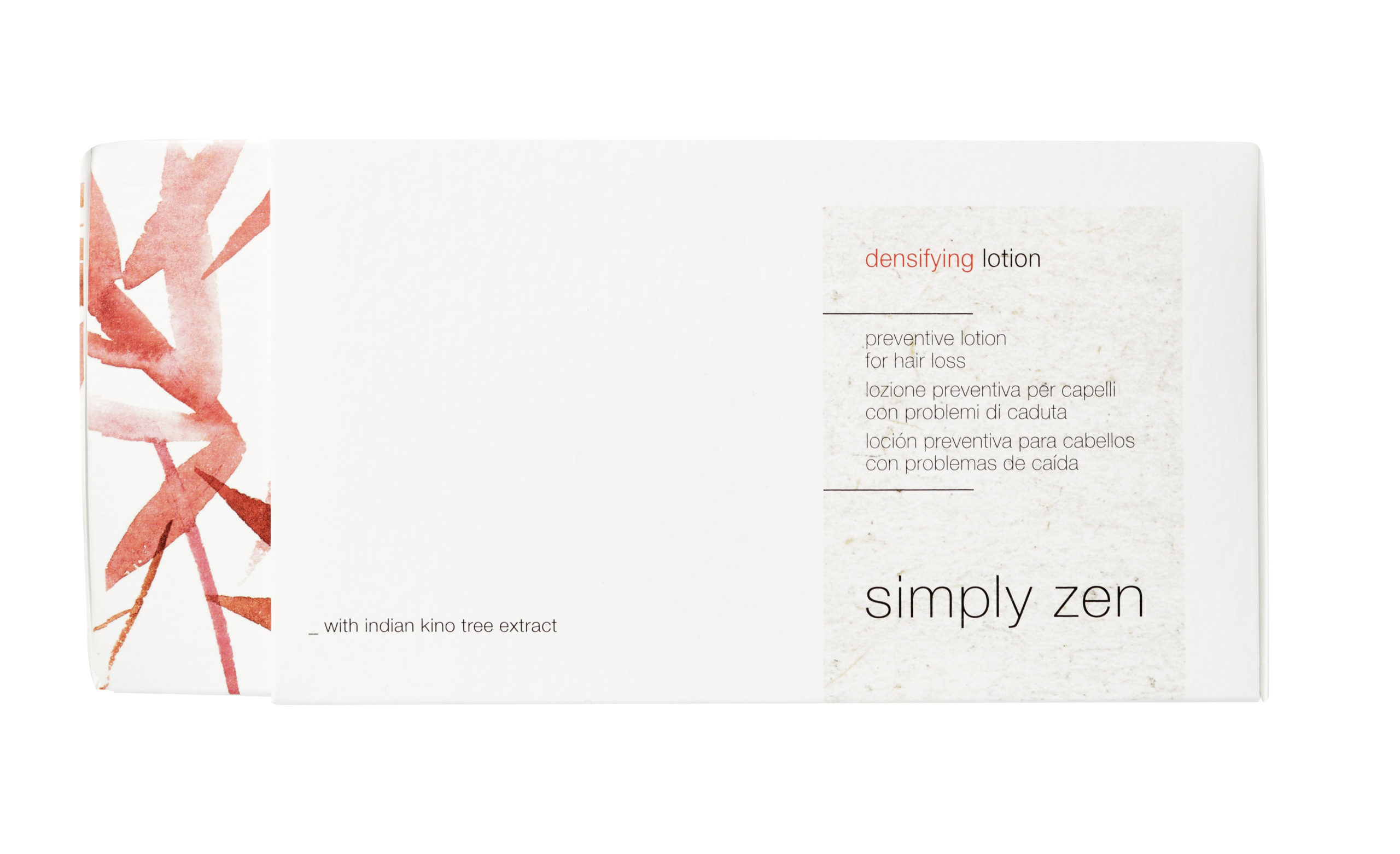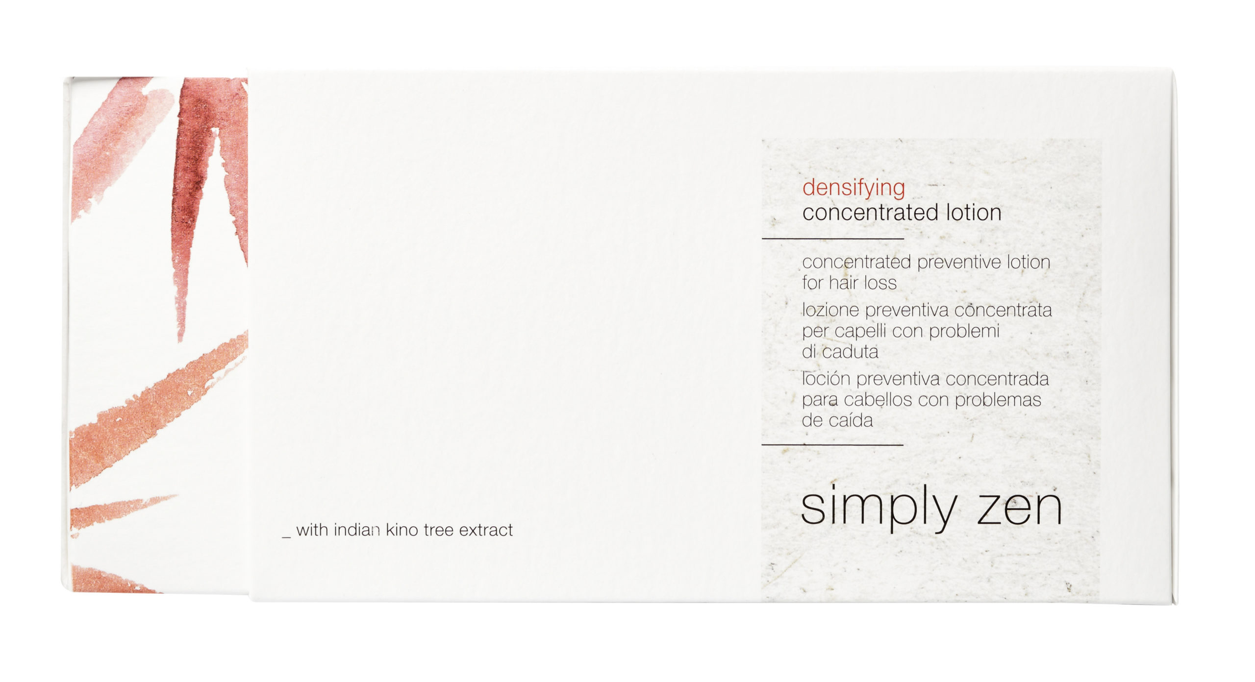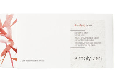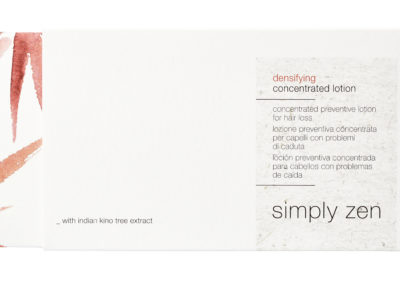 Per sopperire a questi problemi simply zen di z.one concept propone il suo trattamento densifying, un programma sinergico specifico ed efficace composto da 3 prodotti eco-sostenibili che contengono il principio attivo naturale Indian Kino Tree: densifying shampoo, densifying concentrated lotion, e densifying lotion.