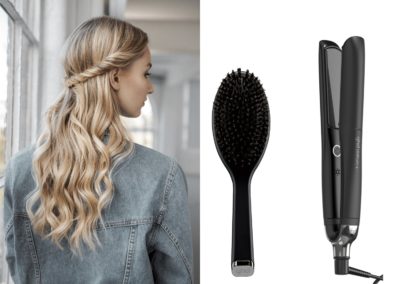 “Per ridurre l’effetto crespo inizia lisciando e sigillando le cuticole dei capelli. Molte styler e asciugacapelli hanno temperature troppo elevate e aprono completamente le cuticole, peggiorando l’effetto crespo – pensate a quando siete in vacanza e il caldo increspa i capelli, l’utilizzo di styling tool che raggiungono temperature eccessivamente alte sui vostri capelli avrà lo stesso effetto. Con ghd platinum +, la tecnologia ultra-zone con predictive technology monitora le lamelle in modo più efficace che mai: la temperatura viene controllata 250 volte al secondo per assicurare che il calore sia mantenuto costante a 185 ° C, che è la temperatura ottimale per acconciare i capelli senza causare danni – e senza aprire le cuticole.” Spiega Adam Reed.