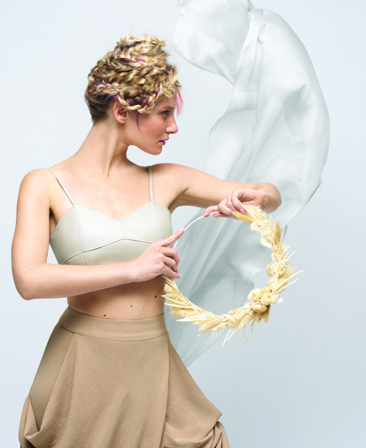 Ispirato agli ultimi trend del 2021: top knot e biondo beige.