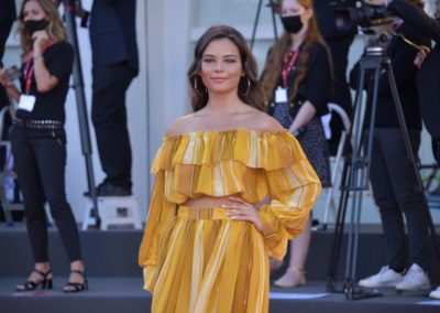A catalizzare l’attenzione dei fotografi è stata, innanzi tutto, la bellissima Sveva Alviti, con un fidanzato d’eccezione dal cognome ben noto: Anthony Delon. Da sempre icona di stile, anche questa volta, Sveva non ci ha delusi nemmeno in fatto di hairstyle, sfoggiando un look super sleek nella parte anteriore, caratterizzato da uno chignon basso leggermente morbido con riga laterale, volutamente non proporzionato ma dalla forma leggermente allungata, e a contrasto con la parte anteriore che, invece, è molto tirata. Il risultato è un’acconciatura chic ed elegante che si addice perfettamente alla personalità di Sveva. Prodotti Cotril utilizzati: REVAMP, per dare lucentezza ai capelli controllando i baby hair fuori posto. GALE, come tocco finale, per fissare l’acconciatura e dare ancora maggiore luminosità al look.