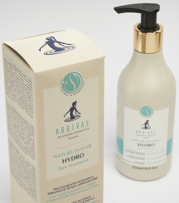 Quindi, secondo il disciplinare del Rituale ARRIVAL, dopo l’utilizzo dello shampoo preparatore DETOX&PURE, procediamo con il Trattamento Intensivo HYDRO che agisce specificatamente donando una Profonda Idratazione, penetrando e trattenendo l’acqua, Rimpolpando i capelli grazie all’azione sinergica dell’Acido Ialuronico e l’Estratto di Malva. In combinazione degli altri ingredienti Naturali e Bio-Organici, Rigenera, Lenisce, Protegge e Nutre senza appesantire con il Gel di Aloe Vera, Il Burro di Karité, l’Acqua Cellulare di Melograno, gli Olii di Cocco e Canapa. I capelli ritornano così ad essere sani, estremamente corposi, morbidi e luminosi. Il prodotto va lasciato in applicazione per 5-10 minuti dopo lo Shampoo e per un effetto estremamente Illuminante e Setoso terminare il Rituale con SHINY&ORDER è un MUST.
