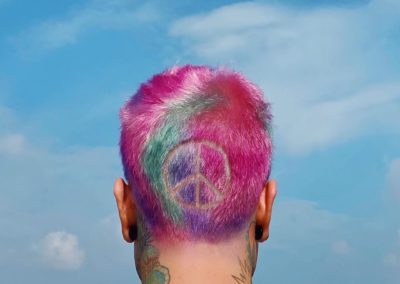 E allora ecco che Fedez ha stupito tutti con un nuovo e inedito hair look, per pubblicizzare l’uscita del suo nuovo singolo “Bella Storia”: una nuance psichedelica multicolor arricchita dal simbolo della pace sulla nuca.