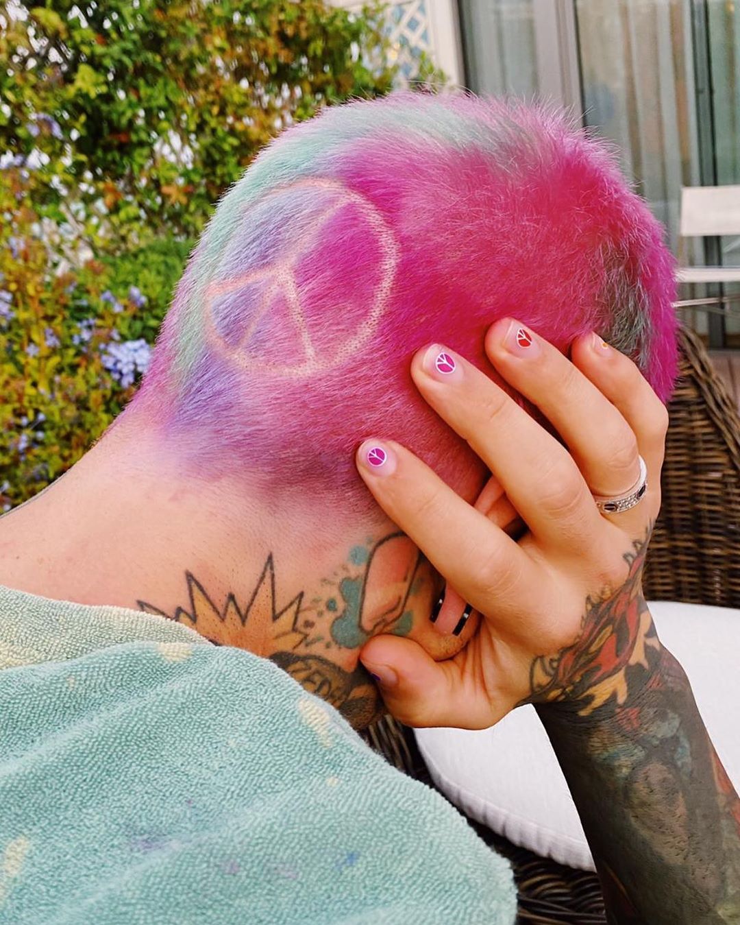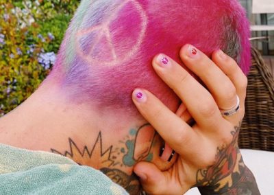 Il pink rainbow di Fedez è stato realizzato da un giovane colorista milanese, Joel Tagliaferri, mentre il segno della pace e il taglio, sono stati realizzati da Brian Cantarosso, entrambi del salone Encadrer, in Via Morimondo.