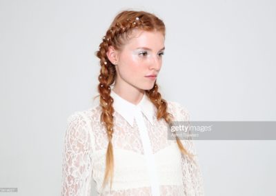 NEW YORK, NEW YORK – SEPTEMBER 09: A model prepares backstage for the Alice + Olivia show during New York Fashion Week: The Shows at Gallery II at Spring Studios on September 09, 2019 in New York City. (Photo by Astrid Stawiarz/Getty Images for TRESemme)