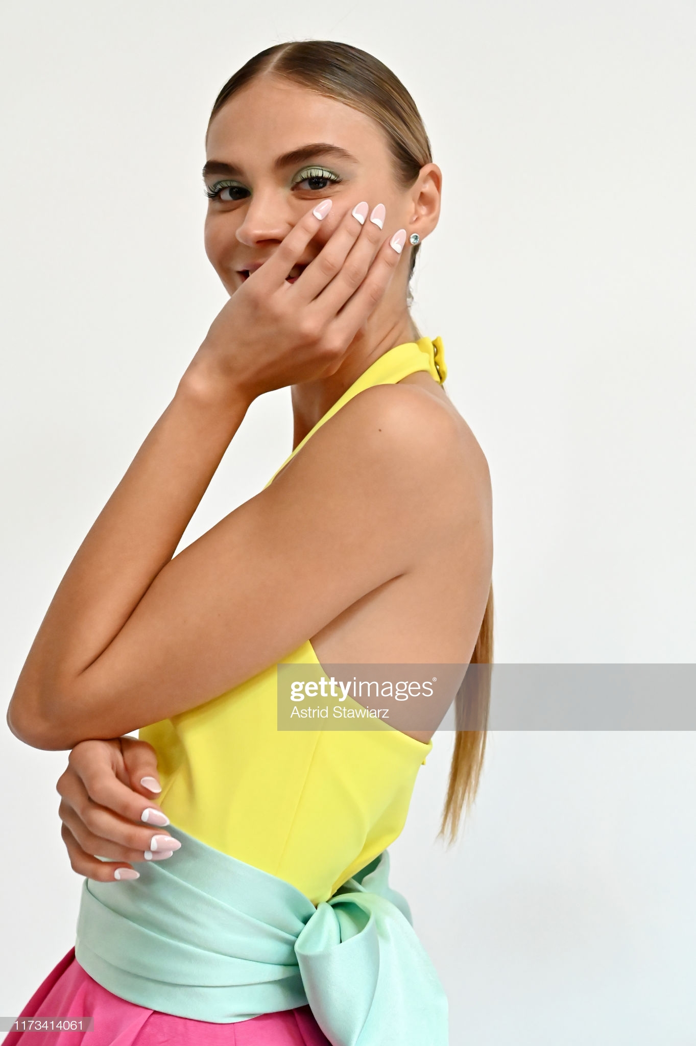 La brand ambassador ghd Justine Marjan, ispirata dai colori vibranti e dalle silhouette della collezione, ha creato tre diversi hair look per completare gli outfit. “Poiché la nuova collezione era così colorata, abbiamo voluto rendere i capelli pop, facendoli super lucidi o aggiungendo accessori divertenti come perle e steli di lavanda”.