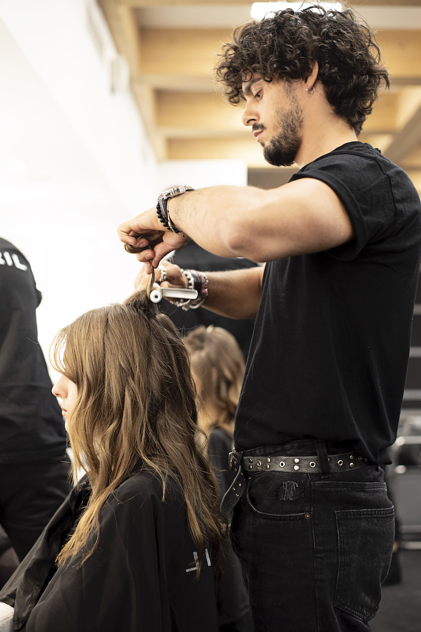 Sono 4 i prodotti utilizzati principalmente: VOLUME ROOTS SPRAY, per dare consistenza ai capelli più sottili; OCEAN per texturizzare e dare movimento alle onde; PRIMER, per dare idratazione al capello, proteggerlo dall’aggressività degli strumenti termici e dare un immediato effetto cosmetico. Infine, per tutte le modelle tocco finale con NUTRO MIRACLE OIL, per nutrire e dare lucentezza al capello.