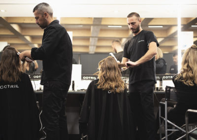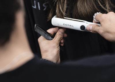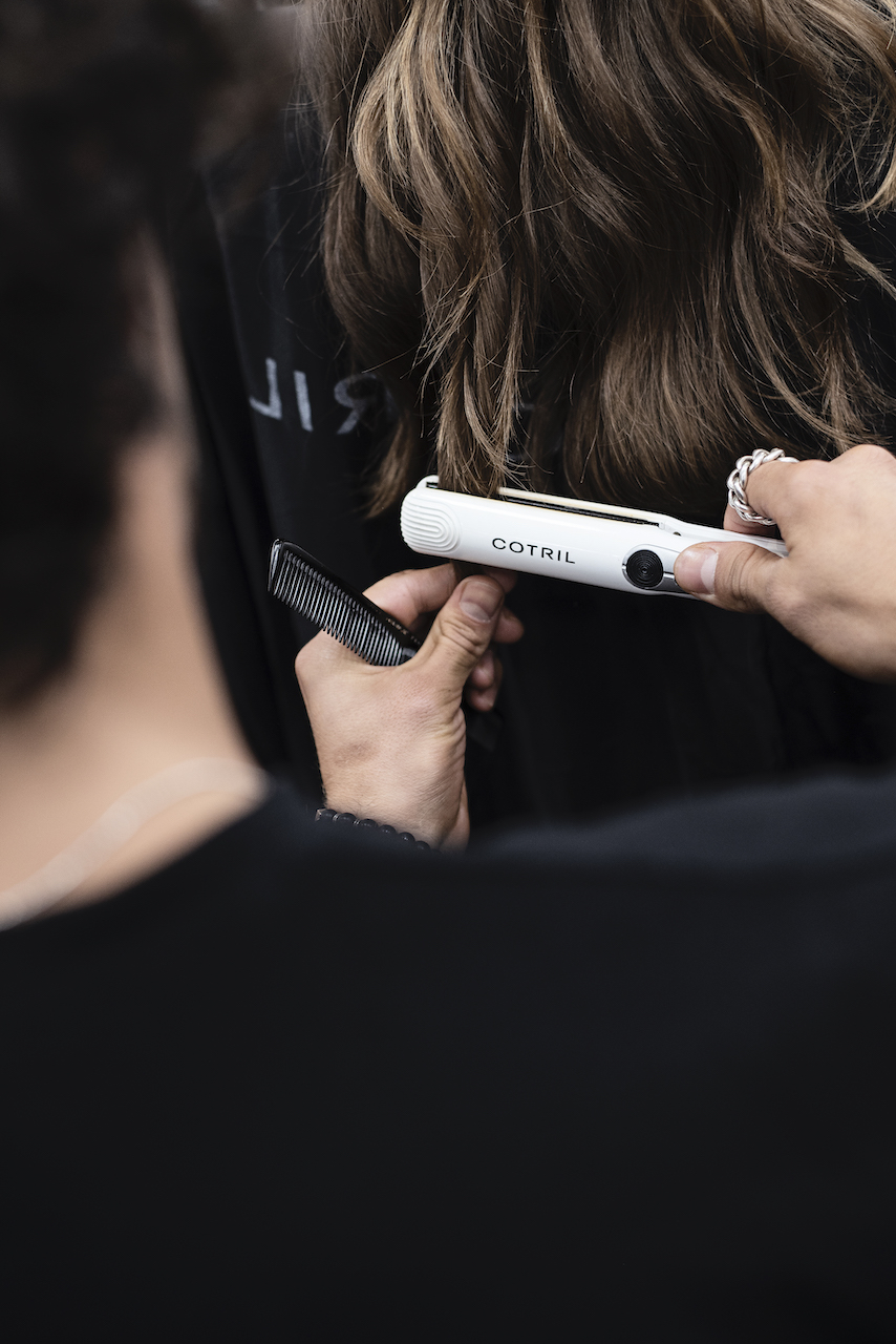 Mood che rivive anche negli hairlook della sfilata, studiati e firmati da Cotril e da Giovanni Iovino, Global Creative Director del brand: una donna siderale, eterea, sofisticata ma allo stesso tempo molto naturale, ricercata ma nella sua semplicità. Una bellezza che si trasmette anche nel suo hairlook attraverso la realizzazione di waves morbide e destrutturate, che rappresentano il fil rouge del mood capelli. Capelli sciolti sulle spalle con onde blande, naturali e leggere lavorate prima con il ferro e successivamente ammorbidite con la piastra.