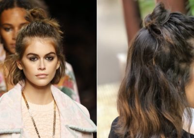 Oggi vi spieghiamo step by step come realizzare un super cool half top knot su questo taglio, per essere casual ma senza rinunciare a un tocco di glamour.