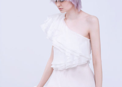 I tagli proposti sono esaltati da colori pastello e da riflessi inaspettati, che giocano per creare un morbido contrasto tra la stratificazione della forma e il colore.