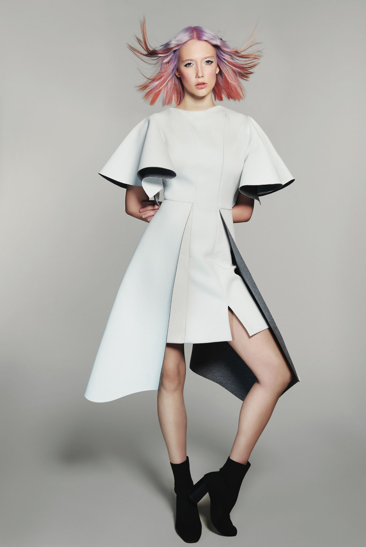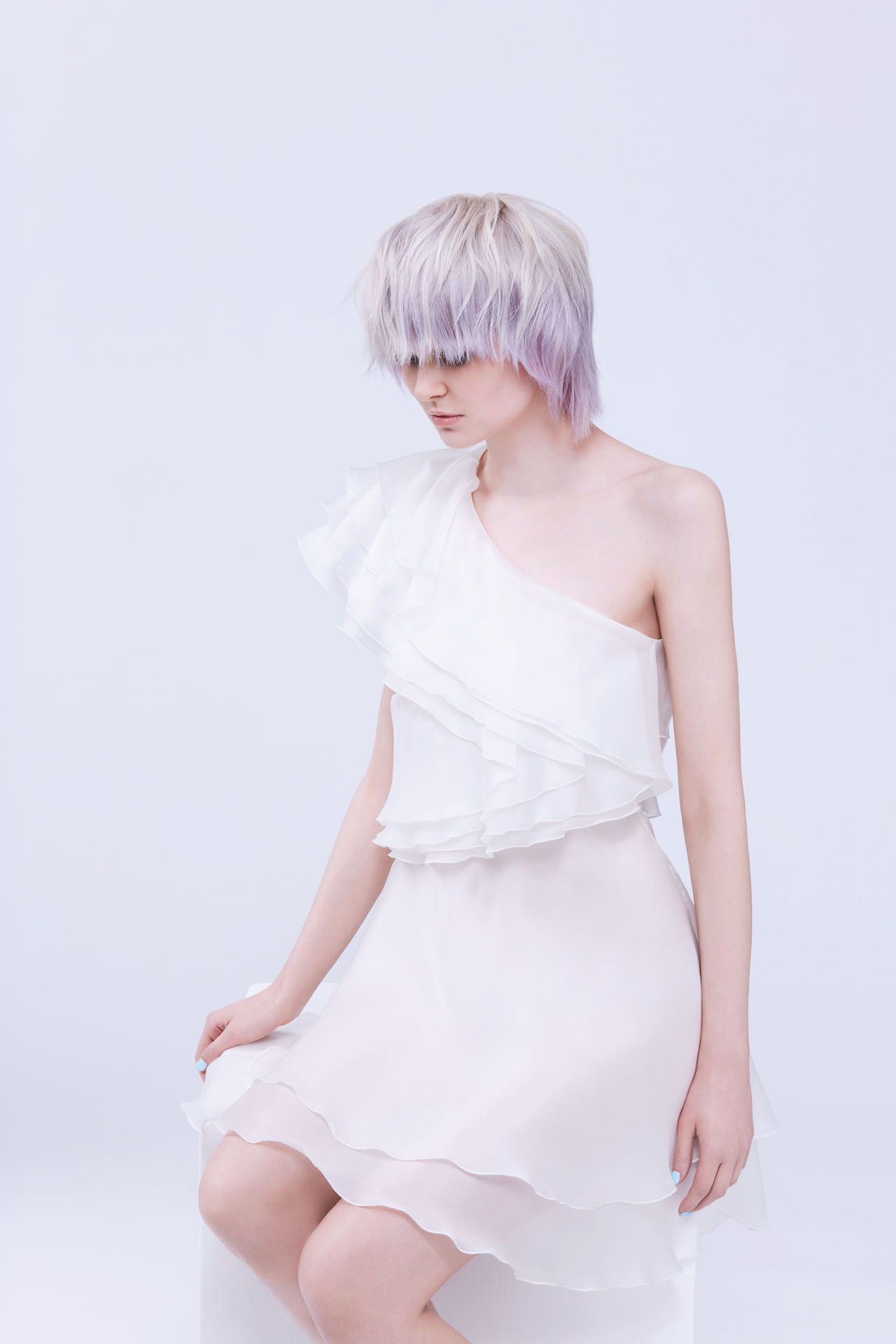 I tagli proposti sono esaltati da colori pastello e da riflessi inaspettati, che giocano per creare un morbido contrasto tra la stratificazione della forma e il colore.