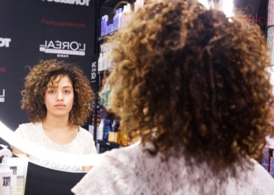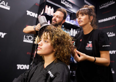 Per preparare i capelli allo styling é stato usato lo spray termo modellante Tecniart PLI Shaper di L’Oréal Professionnel. A questo ha fatto seguito l’applicazione di Tecniart Bouncy &Tender, la crema-gel volumizzante, ideale per esaltare e definire i ricci, proteggendoli dall’umidità.