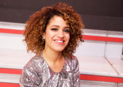 Per la prima volta sul palco di X Factor 13 di Maryam Rouass, diciottenne bergamasca membro della squadra “Under Donne” guidata da Sfera Ebbasta, un look completamente rivisto e ispirato alla valorizzazione del riccio naturale, uno dei trend più forti della stagione. Protagonista della trasformazione, seguendo un mood “disco anni ‘70”, è la scelta del colore: una base scura per dare forza e profondità al riccio naturale e un balayage per muovere e illuminare i volumi. Le lunghezze sono state infine tonalizzate con il nuovissimo servizio svilup- pato da TONI&GUY, Glow Factor di majirel glow, che ha aggiunto un tocco di luminosità al risultato finale.