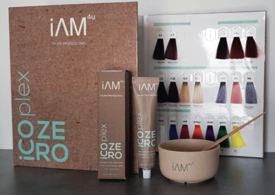 Passando al mondo colore, iAM4u offre una linea di colorazione permanente, iCOplex, caratterizzata da 74 nuance, ispirate al trend del momento ma senza dimenticare i classici del colore, ricche di emollienti che nutrono il capello durante il processo di colorazione lasciandoli straordinariamente morbidi. Il Micropigmento particolarmente puro che la compone penetra in profondità nel capello rendendo il colore duraturo e particolarmente intenso e brillante. La bassa alcalinita’conferisce alla crema colorante delicatezza nel rispetto della salute e della struttura capillare e la bassa percentuale di ammoniaca offre un maggior comfort alla cliente.