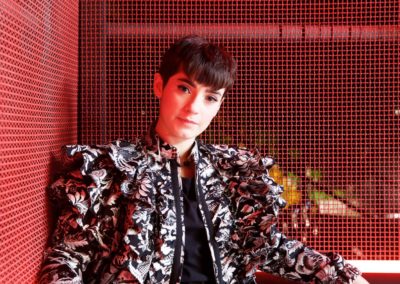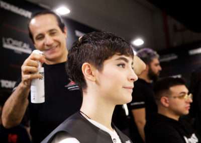 Ispirato a “Pinch Me” della collezione Trend Report 2020 di Toni&Guy e perfetto per un’artista giovane e talentuosa come lei, il look di Sofia si ammorbisce per assumere forme più femminili e definite, con meno volume. Il focus è tutto sulla forma, sull’aggiunta di texture e sul contrasto tra la linea delle spalle e una vita “pinched”. Dopo aver creato il taglio sui capelli lavati e tamponati, è stato applicato lo spray termo modellante Tecniart PLI Shaper di L’Oréal Professionnel per prepare la fibra capillare alla piega.