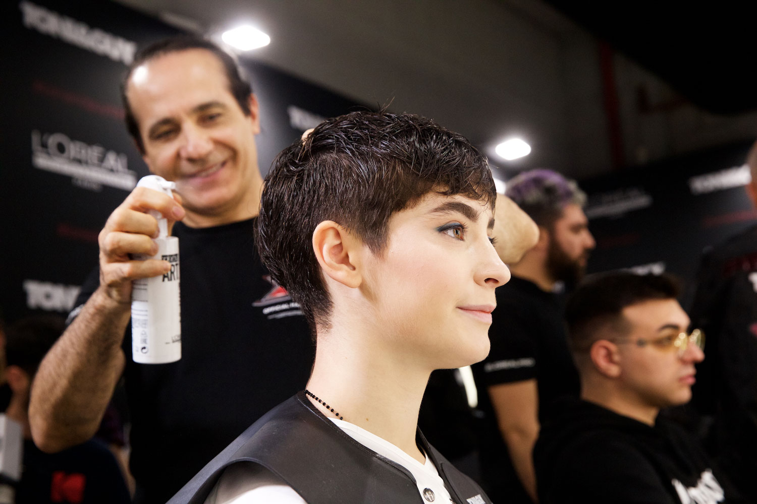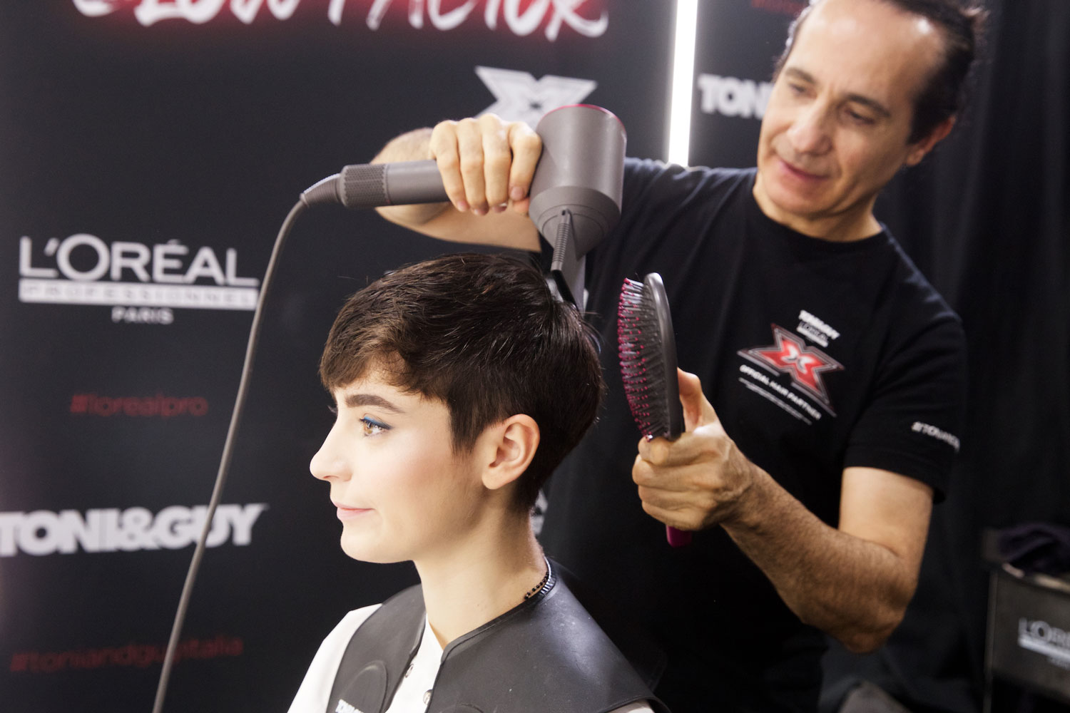 Ispirato a “Pinch Me” della collezione Trend Report 2020 di Toni&Guy e perfetto per un’artista giovane e talentuosa come lei, il look di Sofia si ammorbisce per assumere forme più femminili e definite, con meno volume. Il focus è tutto sulla forma, sull’aggiunta di texture e sul contrasto tra la linea delle spalle e una vita “pinched”. Dopo aver creato il taglio sui capelli lavati e tamponati, è stato applicato lo spray termo modellante Tecniart PLI Shaper di L’Oréal Professionnel per prepare la fibra capillare alla piega.