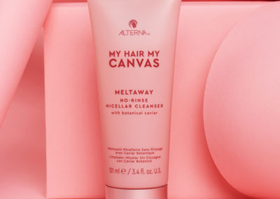 In aggiunta alla linea Extend, per far durare lo styling per più tempo possibile, My Hair My Canvas lancia un prodotto innovativo e unico nel suo genere, il MELTAWAY NO RINSE MICELLAR CLEANSER: si tratta di un detergente senza risciacquo in crema-polvere ad asciugatura rapida. A base di tecnologia micellare, assorbe il sebo e sudore e rinfresca i capelli, come se appena usciti dalla doccia.
