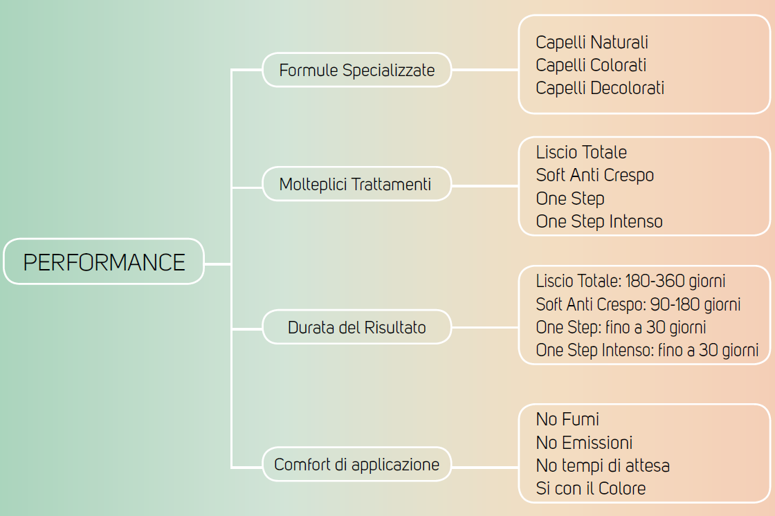 Una serie di trattamenti innovativi studiati per eliminare il crespo attraverso una delicata ridefinizione dei legami e un completo effetto lisciante. 0% di Formaldeide e Aldeidi, liquidi o gassosi. Formulata con un pionieristico brevetto Molecolare Biomimetico. Servizio disponibile solo nei Saloni professionali autorizzati, associato al corretto regime di prodotti specifici di mantenimento.