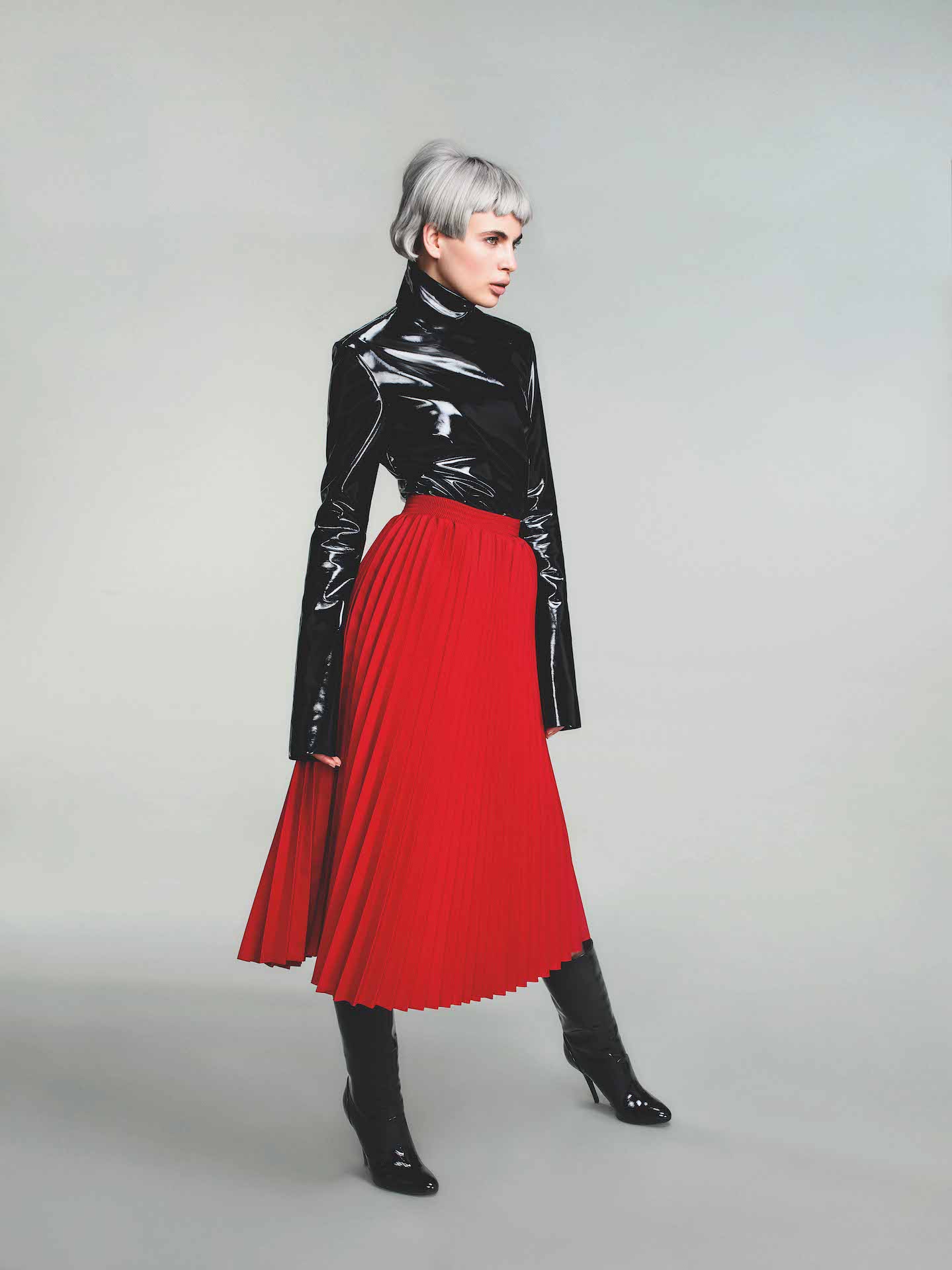 Urbaganza celebra un senso unico di sé, la reinterpretazione di un atteggiamento urbano. Le regole sono sovvertite, le forme classiche imprevedibilmente re-immaginate, combinazioni inaspettate prendono il sopravvento. Una forma semplice viene punteggiata con la vernice, una silhouette pulita diventa sontuosa con un capo in pelle, le linee sono nitide e regna la lucentezza!