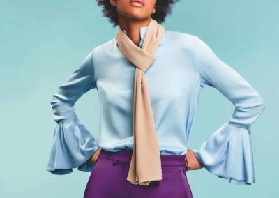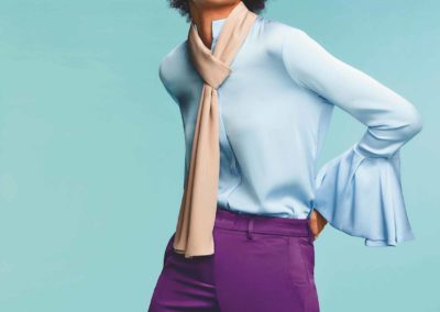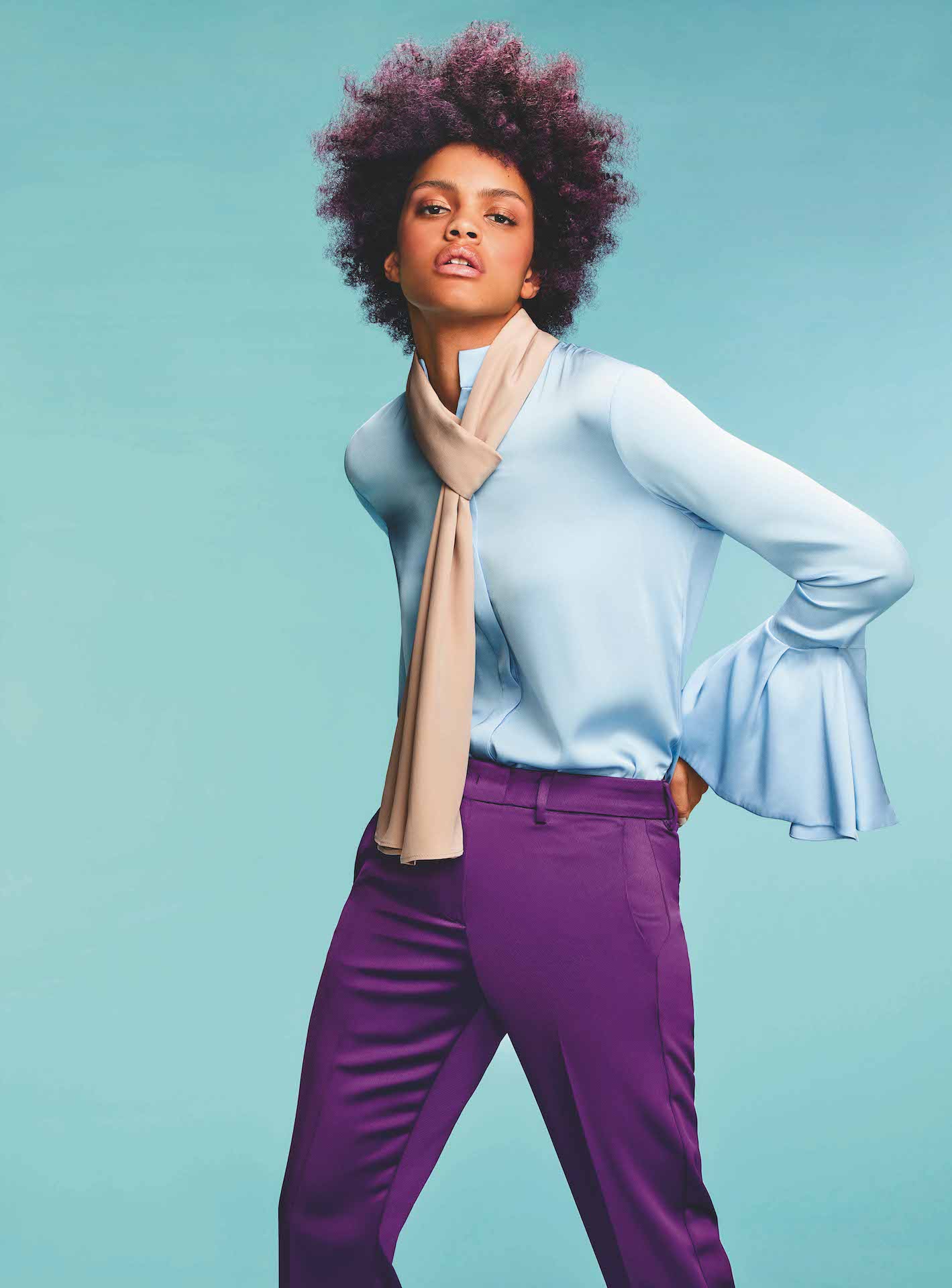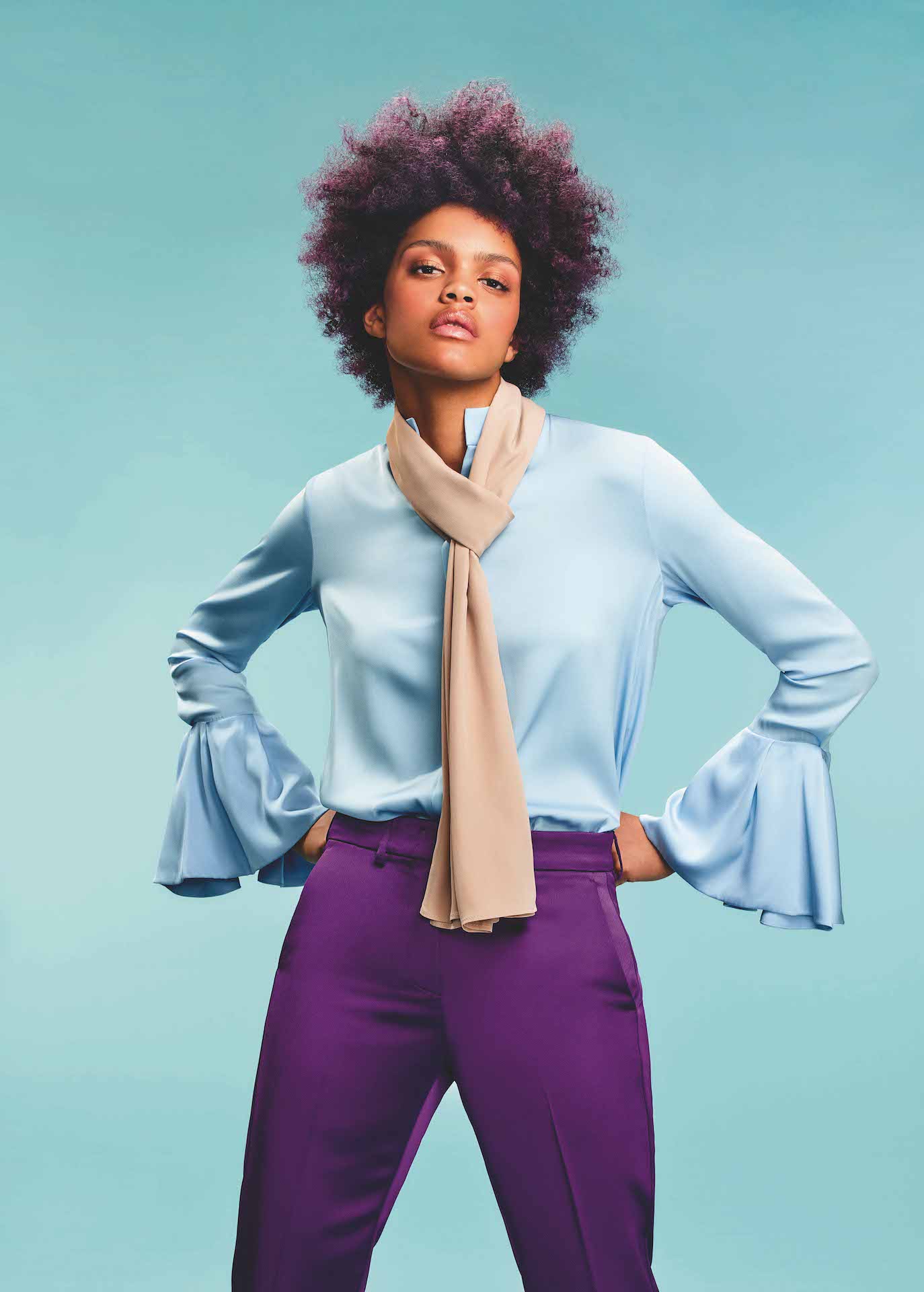In questo trend le sfumature sono audaci e glamour allo stesso tempo, le silhouette marcate con una sensazione di movimento corposo e fluido, di lusso, di potere sobrio indossato con disinvoltura.