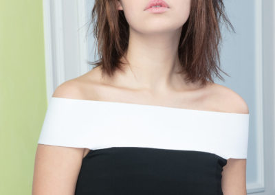 Sui volti lunghi o rettangolari suggerisco frange “push up”, lunghe altezza sopracciglio, stondate e ovalizzate lateralmente ma, cosa prioritaria, ben larghe e in modo tale da riempire il volto.