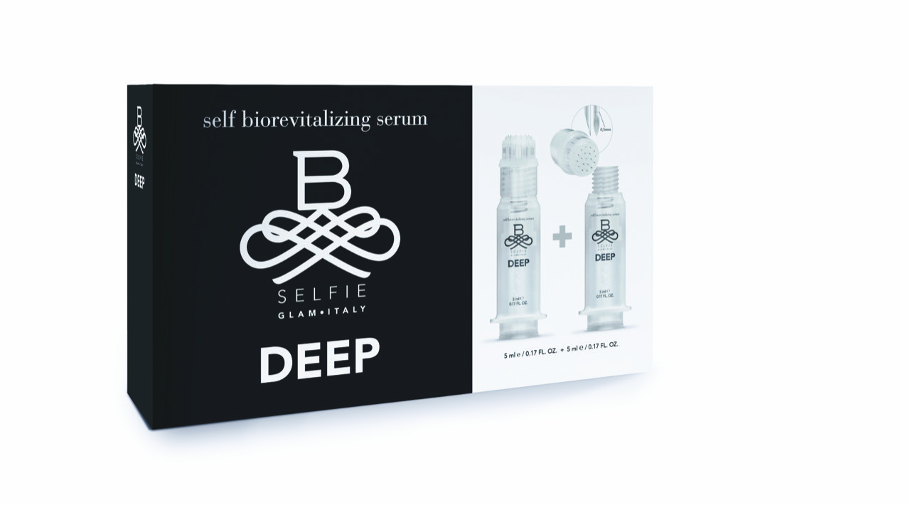 La nuova rivoluzione nell’estetica è B-SELFIE Deep, il primo biorivitalizzante intraepidermico fai-da-te per viso, collo e decolleté, basato su una rivoluzionaria tecnologia iniettiva che, grazie a un’innovativa siringa predosata e dotata di microaghi da 0,5 mm, permette, attraverso un trattamento completamente indolore e senza sanguinamento, di veicolare uno straordinario siero rivitalizzante botox-like e filler-like, per un intenso e istantaneo effetto replumping e tensore. La ricchissima concentrazione di principi attivi vitaminici, antiossidanti, protettivi e rigeneranti conferisce un’idratazione profonda e duratura, per un viso tonico, più giovane e luminoso. Oltre che con i microaghi, il prodotto può essere utilizzato anche con l’applicatore per l’uso topico: in questo caso la penetrazione in epidermide è agevolata da due acidi ialuronici, che, grazie alla tecnologia dei nanosomi, veicolano la biorivitalizzazione in profondità. (Utilizzo: 1-2 trattamenti mensili. Formato: 2 siringhe monoutente da 5 ml con microaghi per applicazione intraepidermica più applicatore per applicazione topica. Confezione per 2 trattamenti monoapplicazione intraepidermica o, in caso di applicazione topica, da suddividere in cinque momenti ciascuno. Prezzo consigliato al pubblico: 119 €)