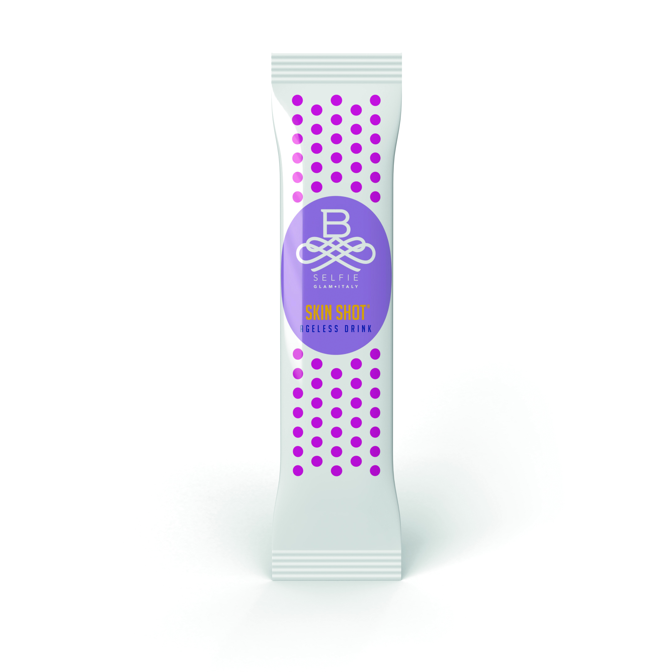 B-SELFIE Skin Shot è una formulazione esclusiva che, grazie a un brevetto internazionale, per la prima volta unisce i peptidi idrolizzati di collagene all’acido ialuronico e ad altri principi attivi antiossidanti e vitaminici di straordinaria efficacia. Un vero e proprio “collagene da bere”, che assicura un formidabile trattamento anti-age per tutto il corpo: oltre a donare turgore e compattezza alla pelle, svolge infatti un’azione intensamente benefica anche per la salute delle articolazioni. L’azione combinata dei suoi principi attivi contrasta la formazione delle rughe e il rilassamento cutaneo causati dall’invecchiamento, dall’esposizione ai raggi ultravioletti e dall’inquinamento ambientale, stimolando il metabolismo dell’epidermide e donando una pelle più giovane, sana e levigata. Il miglioramento della struttura tissutale contribuisce inoltre alla riduzione degli inestetismi della cellulite. (Utilizzo: 1 stick da 15 ml da assumere ogni mattina. Formato: 25 stick da 15 ml cadauno. Confezione per 25 giorni di trattamento. Prezzo consigliato al pubblico 59,90 €).
