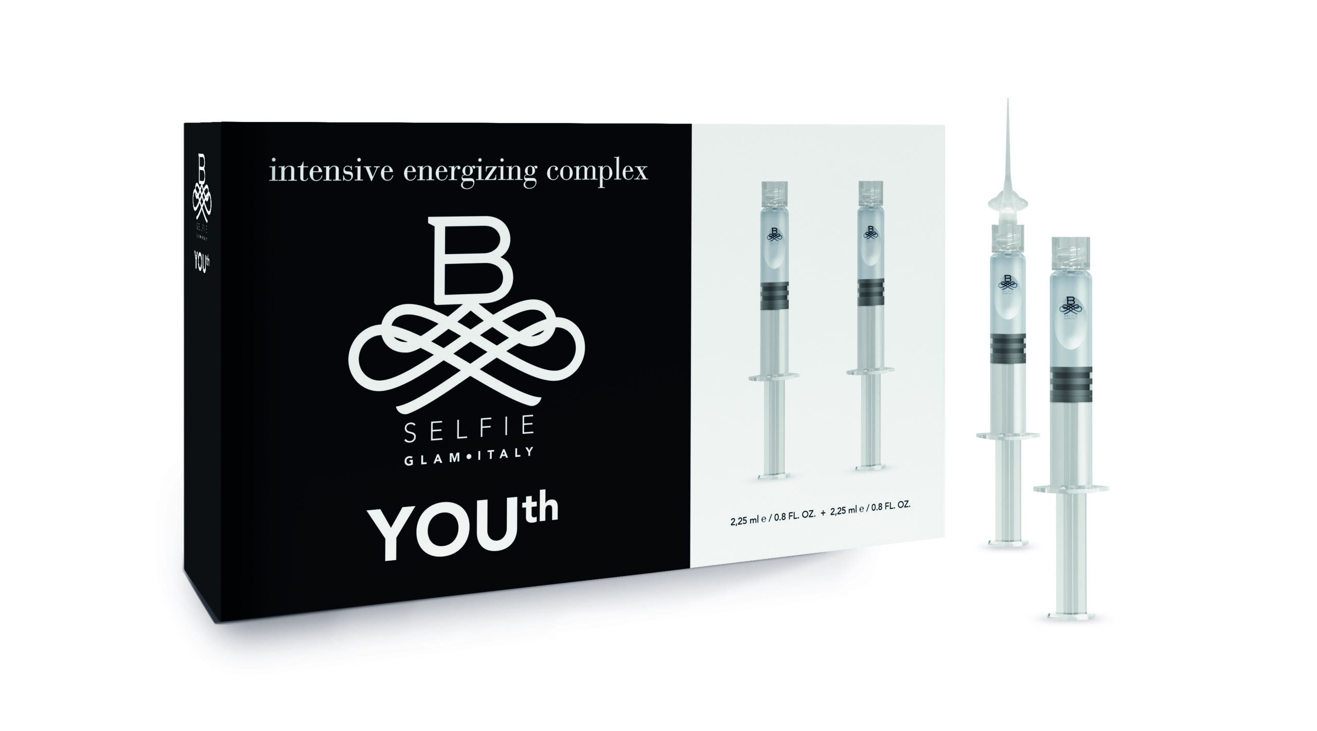 B-SELFIE YOUth è un intenso siero che dona al viso una nuova cascata d’energia, per una pelle idratata, compatta e luminosa. Una formula unica per un effetto botox-like e filler-like sorprendente, grazie alla sinergia tra l’acido ialuronico ad alto peso molecolare, l’acido ialuronico cross-linkato, l’acetyl octapeptide-3 e un potente blend di vitamine. La penetrazione in epidermide è agevolata dai due acidi ialuronici che, grazie alla tecnologia dei nanosomi, veicolano i principi attivi in profondità. Due pratiche siringhe con applicatore topico consentono un entusiasmante auto-trattamento per un viso immediatamente più giovane, luminoso e dai contorni ridefiniti. Il dermaroller amplifica l’azione botox-like e filler-like di B-SELFIE YOUth, agevolando la penetrazione in epidermide del cocktail biorivitalizzante. Un prodotto rivoluzionario anche per l’elevata concentrazione dei suoi potenti attivi, che estende a tutti la gratificazione di un trattamento professionale di semplice esecuzione domiciliare. (Utilizzo: 1-2 trattamenti mensili. Formato: 2 siringhe in vetro con applicatore per uso topico da 2,25 ml e 1 dermaroller. Confezione sufficiente per una settimana di trattamento. Prezzo consigliato al pubblico: 79 €).