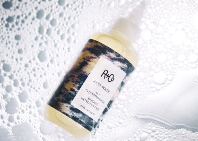Acid Wash, invece, riequilibra la cute e lucida le lunghezze con questo prodotto all’aceto di mela. Con tappo dosatore per un’applicazione mirata. Da R+Co.