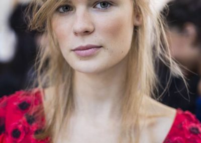 Volume non fa rima con capelli sottili, ma con l’acconciatura giusta anche questo problema può essere risolto, evitando un risultato piatto e statico per chi ha capelli di media lunghezza. Il long bob della modella nella foto è leggermente scalato (il vostro parrucchiere saprà fare un lavoro a regola d’arte, scegliendo una graduazione di scalatura che terrà conto delle caratteristiche della vostra chioma e del vostro viso) e raccolto in una mezza coda bassa. Il segreto del volume sulla testa? La riga laterale bassa dà movimento e sostegno al ciuffo lungo che, grazie a un velo di spray texturizzante, è il protagonista di questo hairstyle. Per fissare la mezza coda, vanno benissimo delle forcine, neutre o decorate.