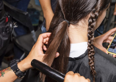 Per ottenere il look, Sam ed il suo team hanno asciugato e lisciato i capelli prima di sezionarli ed intrecciarli, ma il segreto del finish elegante di questo stile è stata la Babyliss 9000, la nuovissima e rivoluzionaria piastra cordless. Questo nuovo rivoluzionario prodotto, che è già diventato un successo durante questa stagione della London Fashion Week, è unico nelle sue alte prestazioni, con la comodità di non aver nessun filo.