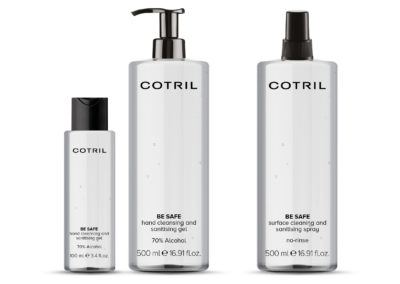 La diffusione del Covid-19 ha portato necessariamente ad un cambiamento, volto in una maggiore responsabilizzazione, delle abitudini quotidiane e Cotril non si è tirata indietro cercando di reagire con positività e proattività al fianco di professionisti e clienti. Per questo motivo l’Azienda ha deciso di riconvertire una parte della sua produzione in igienizzanti e ha introdotto nuovi strumenti di sicurezza, per fornire un contributo concreto e soddisfare le esigenze che caratterizzeranno la «nuova» routine dei prossimi mesi. Da questi presupposti nasce Be Safe, la nuova linea igienizzante firmata Cotril, una formula sicura e di qualità pensata in vari formati per soddisfare sia le esigenze del salone che quelle delle clienti.