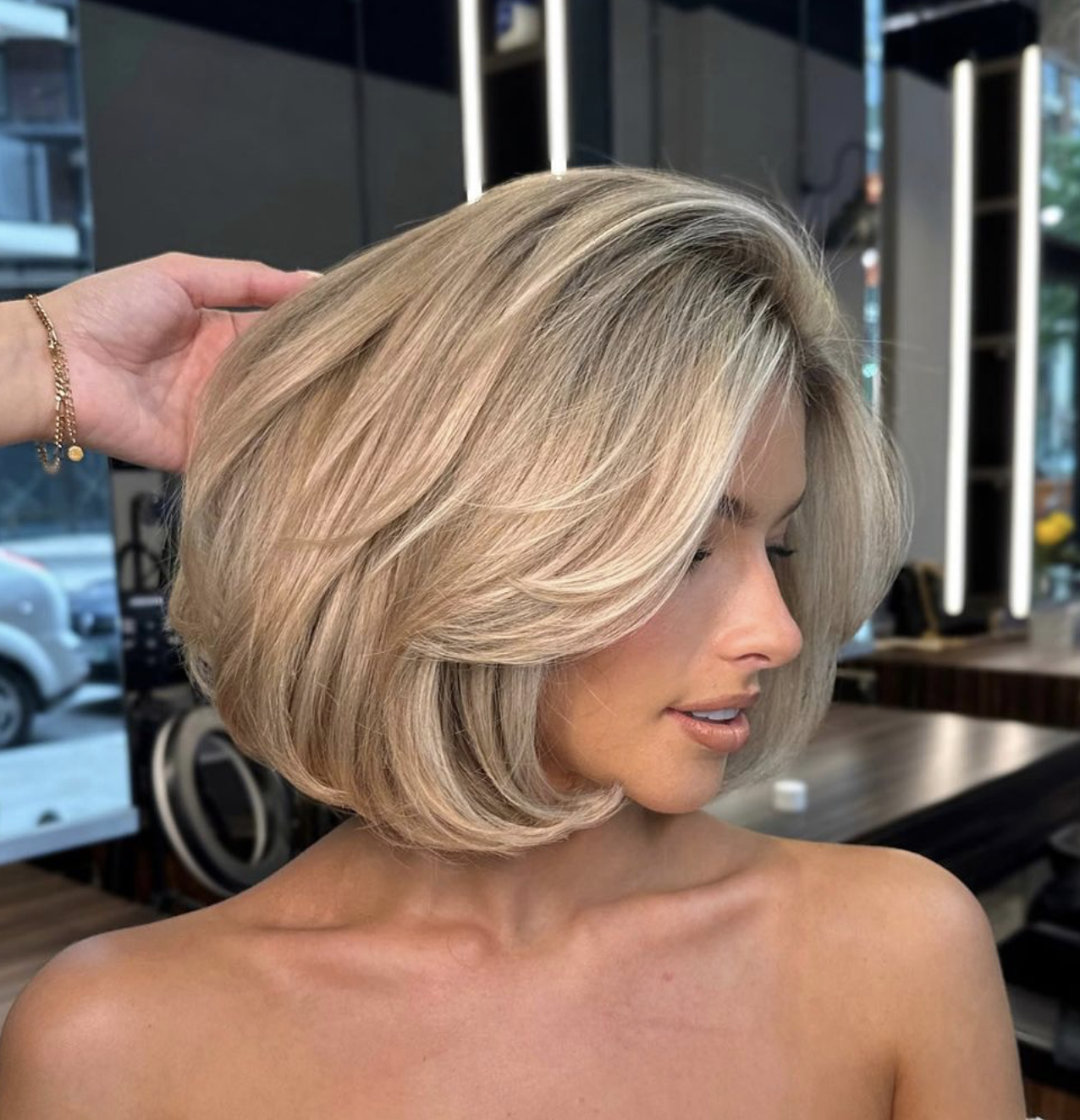 Gli esperti del settore capelli descrivono l’Old Money Bob come un taglio più pesante e massiccio, con un’arrotondamento pronunciato e un volume considerevole. È particolarmente voluminoso e lucido, mantenendo al contempo corpo e movimento. La lunghezza ideale per questo tipo di bob si posiziona tra il mento e la clavicola, idealmente senza strati.