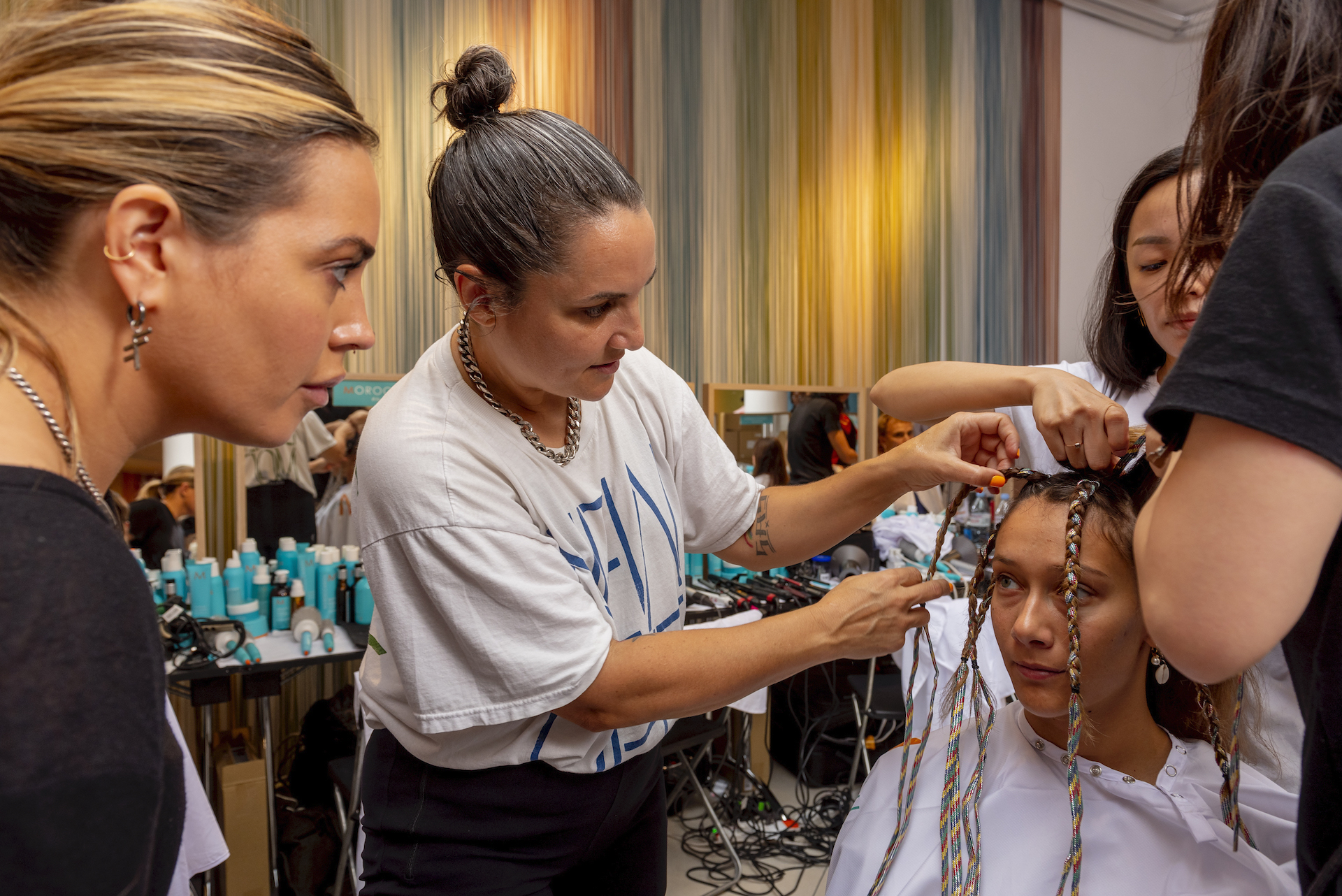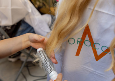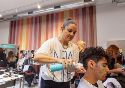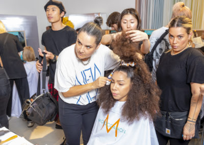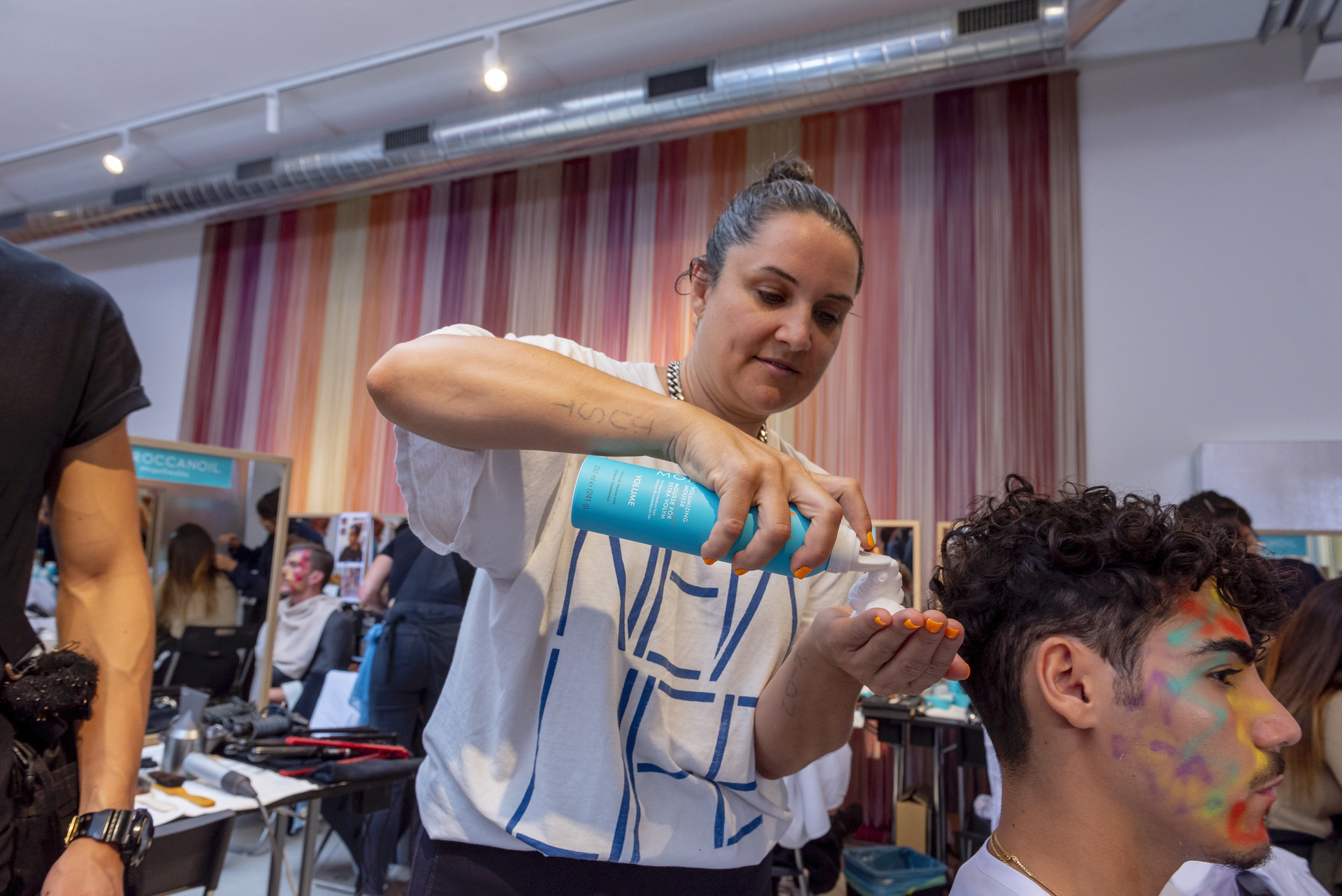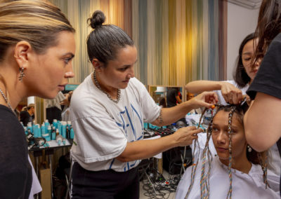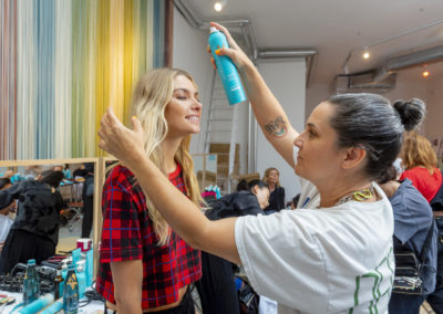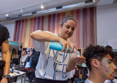 “Per esaltare una presentazione così diversa, con figure così eterogenee abbiamo pensato di creare un look su misura per ciascuno, per declinare ed esaltare le singole personalità, pur mantenendo dei codici comuni” ha dichiarato Holly Smith lead hair stylist per Moroccanoil nel backstage di M Missoni.