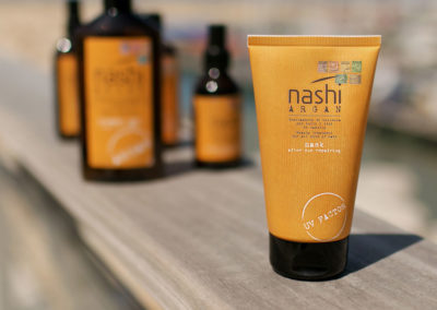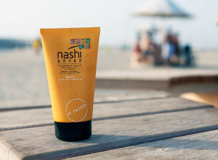La linea Nashi Argan solare soddisfa le esigenze dei capelli esposti all’azione disidratante di sole, salsedine, vento e cloro, aiutandoti a mantenerli belli e in salute.