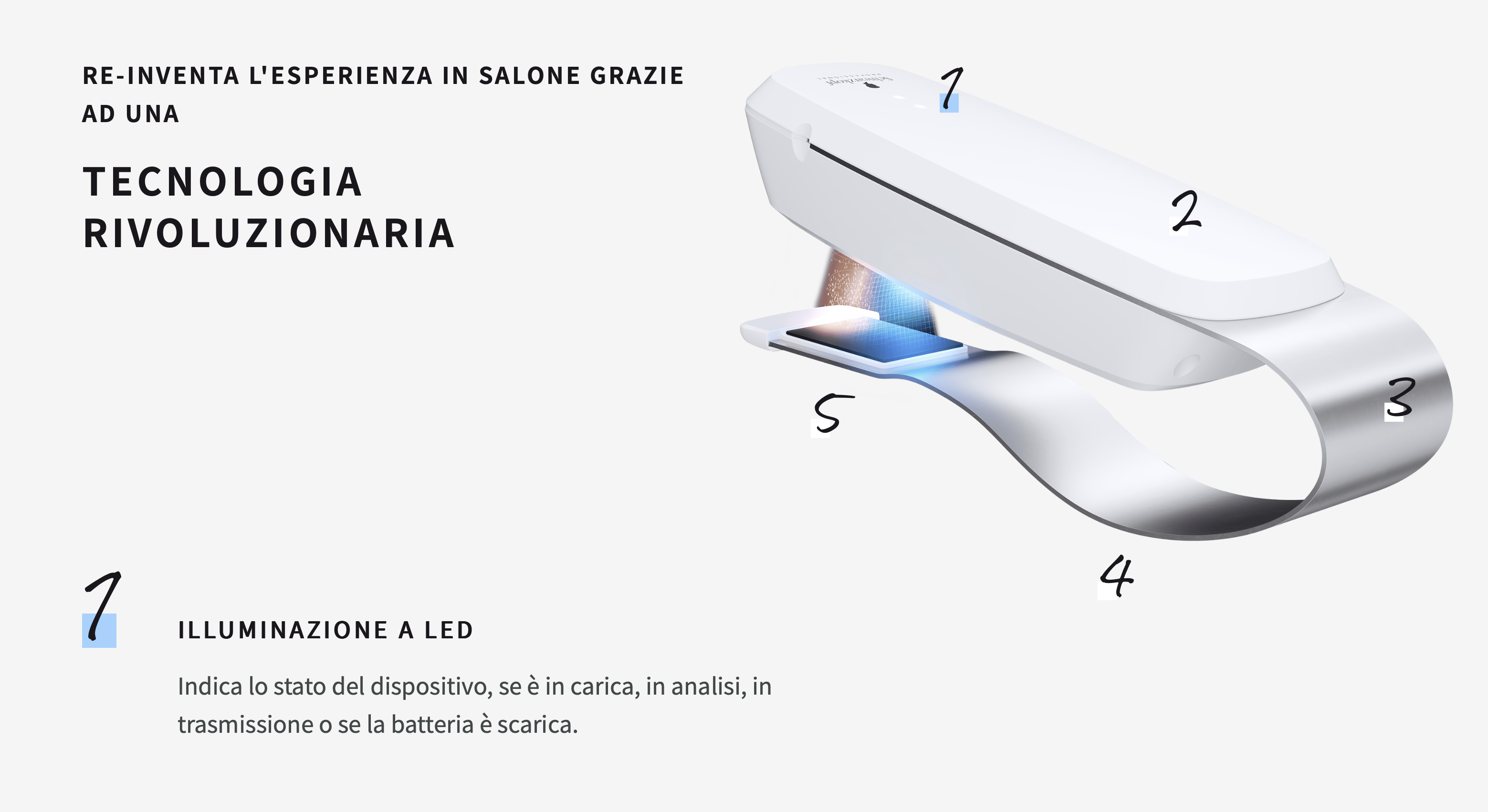 Questo strumento offre ai parrucchieri la possibilità di offrire un servizio altamente personalizzato ai loro clienti, per ottenere una diagnosi su basi scientifiche