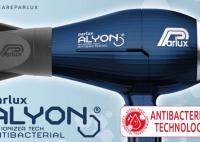 PARLUX ha risposto prontamente e concretamente a questa nuova esigenza di clienti e acconciatori presentando il phon Parlux ALYON® BLU NOTTE con tecnologia “ANTIBATTERICA”, la cui superficie è trattata con uno speciale trattamento antimicrobico, testato e garantito da un ente certificato. Questo aspetto, come tutte le caratteristiche tecniche già note di questo phon, è stato studiato per agevolare e semplificare il lavoro del professionista.