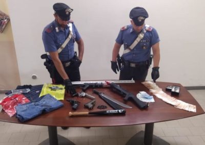 A casa dell’arrestato i carabinieri hanno trovato un suv, le cui rate dell’affitto erano pagate dal parrucchiere, due Rolex e 15mila euro in contanti, coltelli, un machete e diverse pistole sceniche.