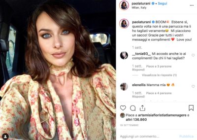 Qualche esempio? Partiamo da casa nostra e dall’ex modella diventata influencer con oltre 1,2 milioni di followers, Paola Turani, che ha detto addio alla sua lunga chioma riccia che l’ha accompagnata anche nel giorno del suo matrimonio, optando per un caschetto di media lunghezza, alle spalle, con ciuffo sfilato e piega mossa con onde naturali.